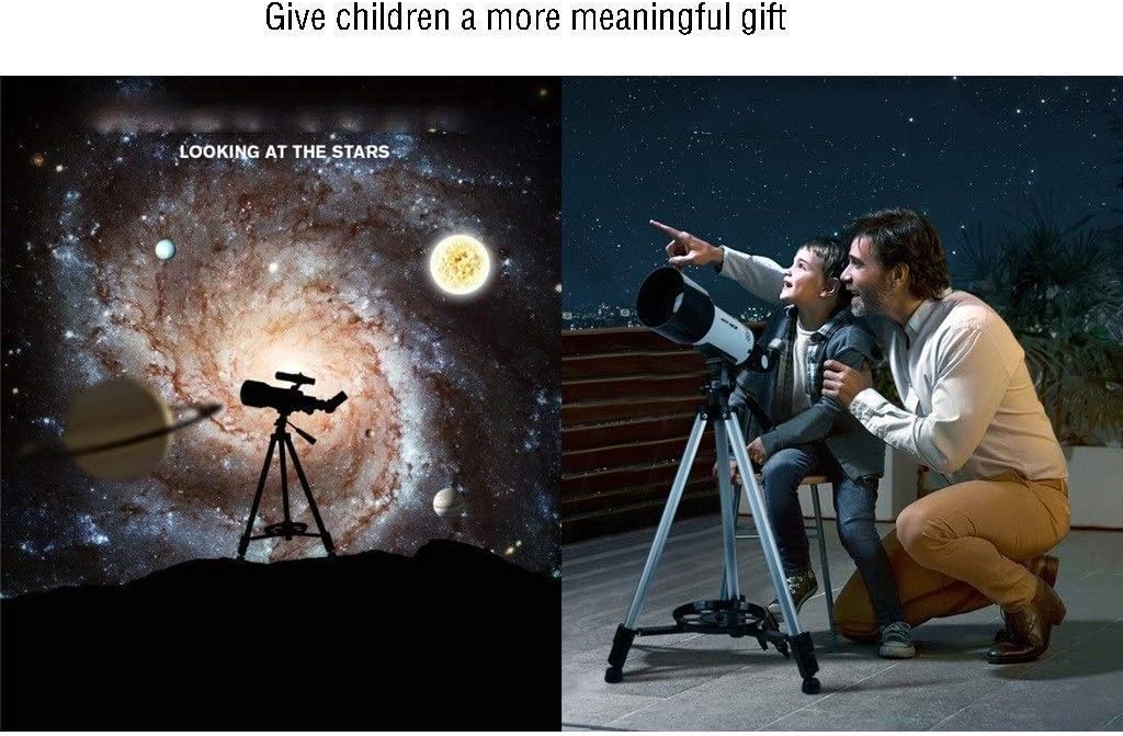 1. The refractor has a strong focal length, a large field of view, and a strong resolution.Multilayer optical coating,Refractive optical system,high light transmittance, and enhanced image brightness and clarity.Aluminum tripod 2. It is very suitable for astrometric work, and it performs well in observing the moon, planets, and binary stars. Easy to observe the ground view, very suitable for enlarged photography of the moon and planets 3. The telescope is suitable for beginners or children. It is easy to install and observe for beginners. It will encourage children to like learning space, get close to nature and stay away from electronic products. And provide a wonderful holiday or birthday gift idea for children who like science and astronomy. 4. If you have any questions about quality after receiving this space telescope, please contact us for the first time.