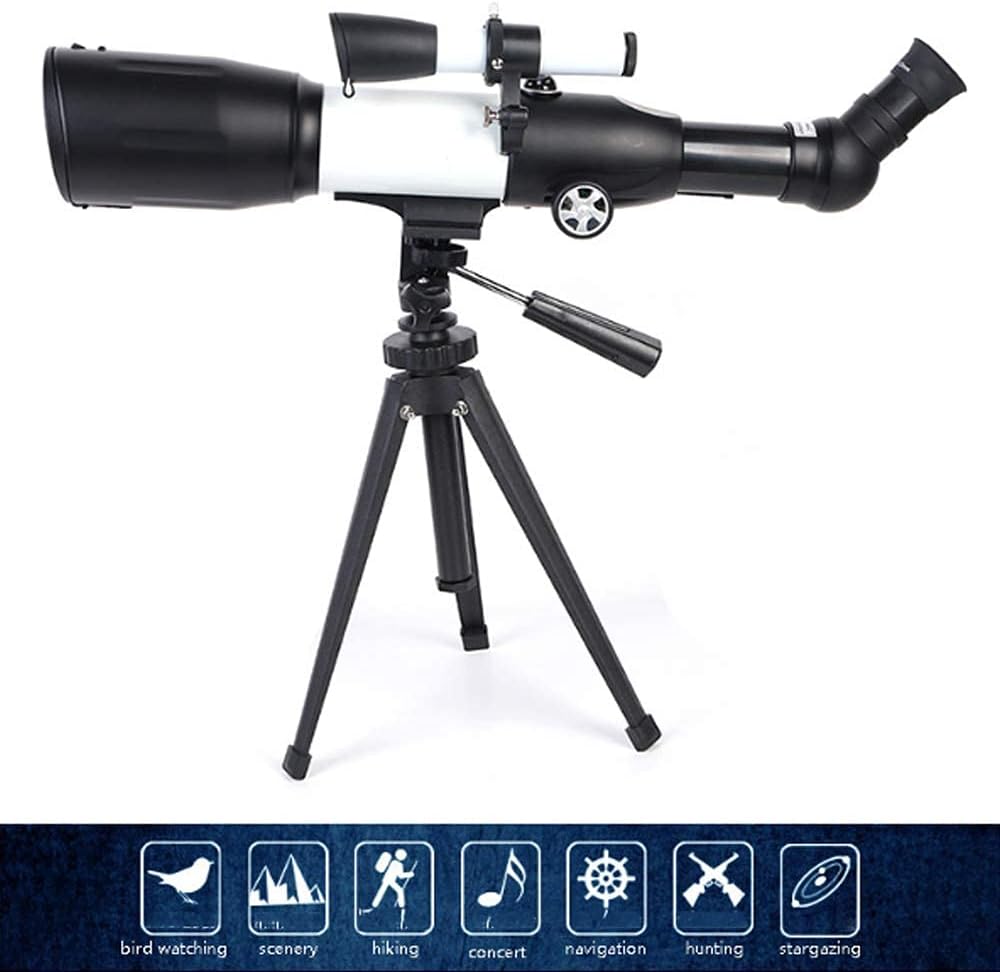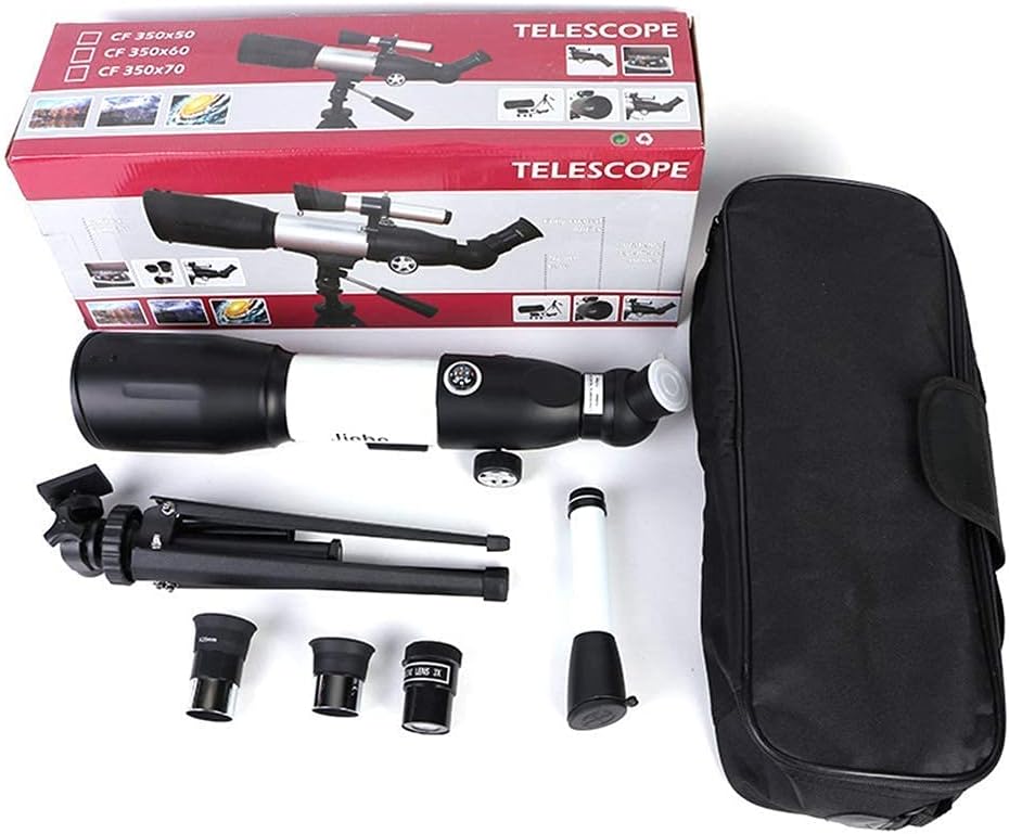 Telescope for Astronomy High quality.Aluminum alloy construction, lightweight and portable, good choice for students or those who want to learn more about space and nature Function type: Astronomical telescope Purpose: civilian telescope Focal length: 350mm Instrument magnification: 116 Objective lens diameter: 50rmm Packing number: 10 Eyepiece: K25K9 Bracket: Height 38CM Weight: 3kg Specification: 35050 Finder: 5*24 Color: silver white Structure: Monocular Accessories: Main lens*1 Eyepiece *3 Finder*1 Handbag*1 Tripod*1 Notes: 1.Due to the different monitor and light effect, the actual color of the item might be slightly different from the color showed on the pictures. Thank you! 2.Please allow 1-3cm measuring deviation due to manual