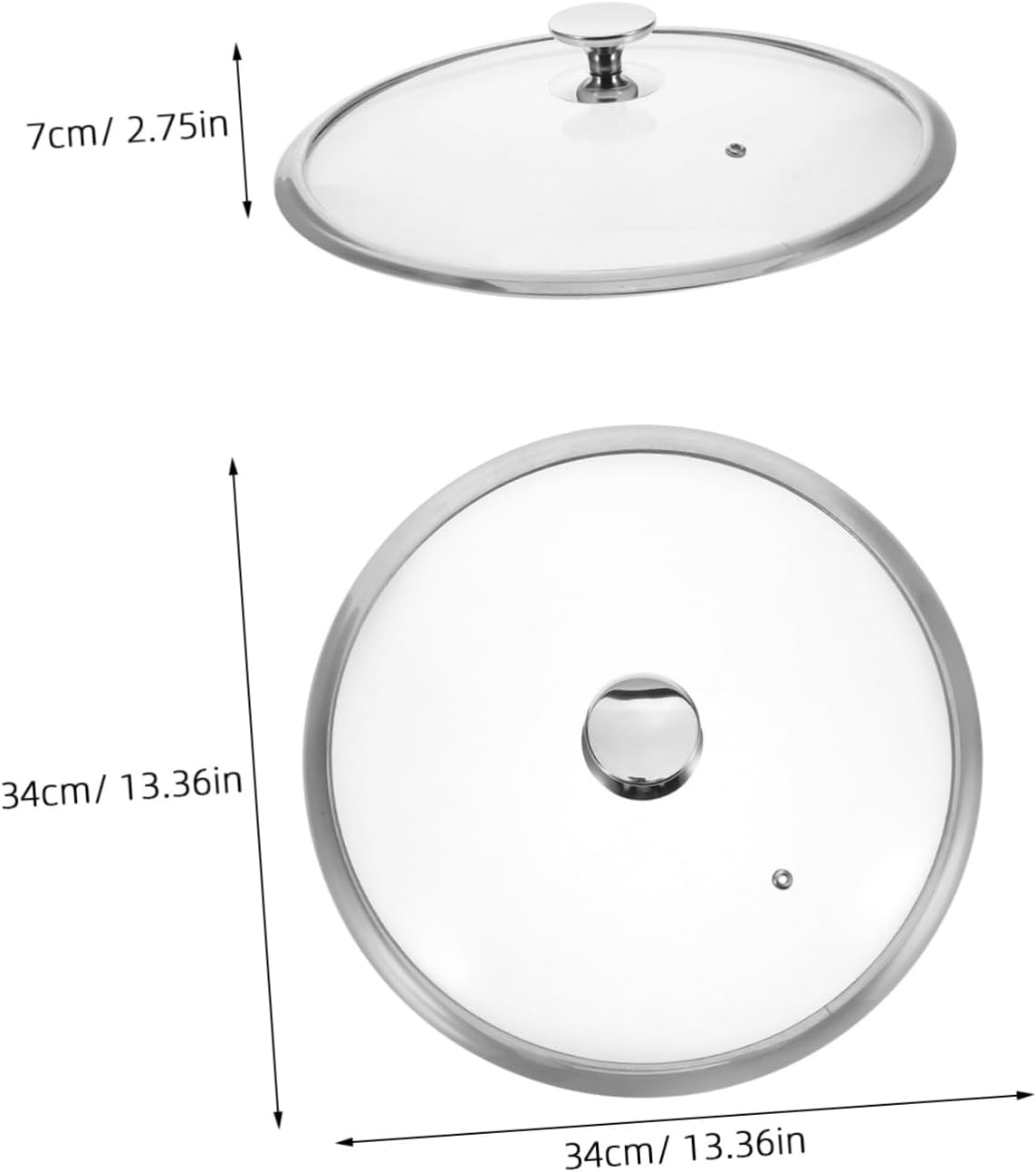 Package List 1 x Stainless Steel Pot Cover Features -Safety: made with tempered glass, this lid is ensuring a safer cooking experience in your kitchen frying pan cover -Material:Stainless steel pot lids only -Versatility: suitable for various of frying pans and soup pots, this lid is practical and helps save kitchen space by being universally compatible pan lid -Size:34.00X34.00X7.00cm/13.36X13.36X2.75in glass lid for pan -Durability: the thickened and widened sanded edges provide extra strength and durability, making it resistant to deformation and pot pan lids -Easy cleaning: constructed from stainless steel, this lid is easy to clean, helping you maintain a kitchen environment effortlessly wok lid -Aesthetic design: featuring a simple and stylish design, this lid enhances the overall look of your kitchen, adding a touch of modern elegance pot cover -Color:Silver pan lid replacementGoods Informationreplacement pot lids The stainless steel wok lid with a tempered glass cover is for all your cooking needs.frying pan cover This versatile lid fits various pots and pans, making it a must-have in any kitchen.stainless steel lid for pans The sanded edges prevent any accidental cuts, while the explosion-proof glass provides a clear view of your cooking .universal pot lid Its thickened and widened design durability and safety, making it an for soups, stews, and stir-fries