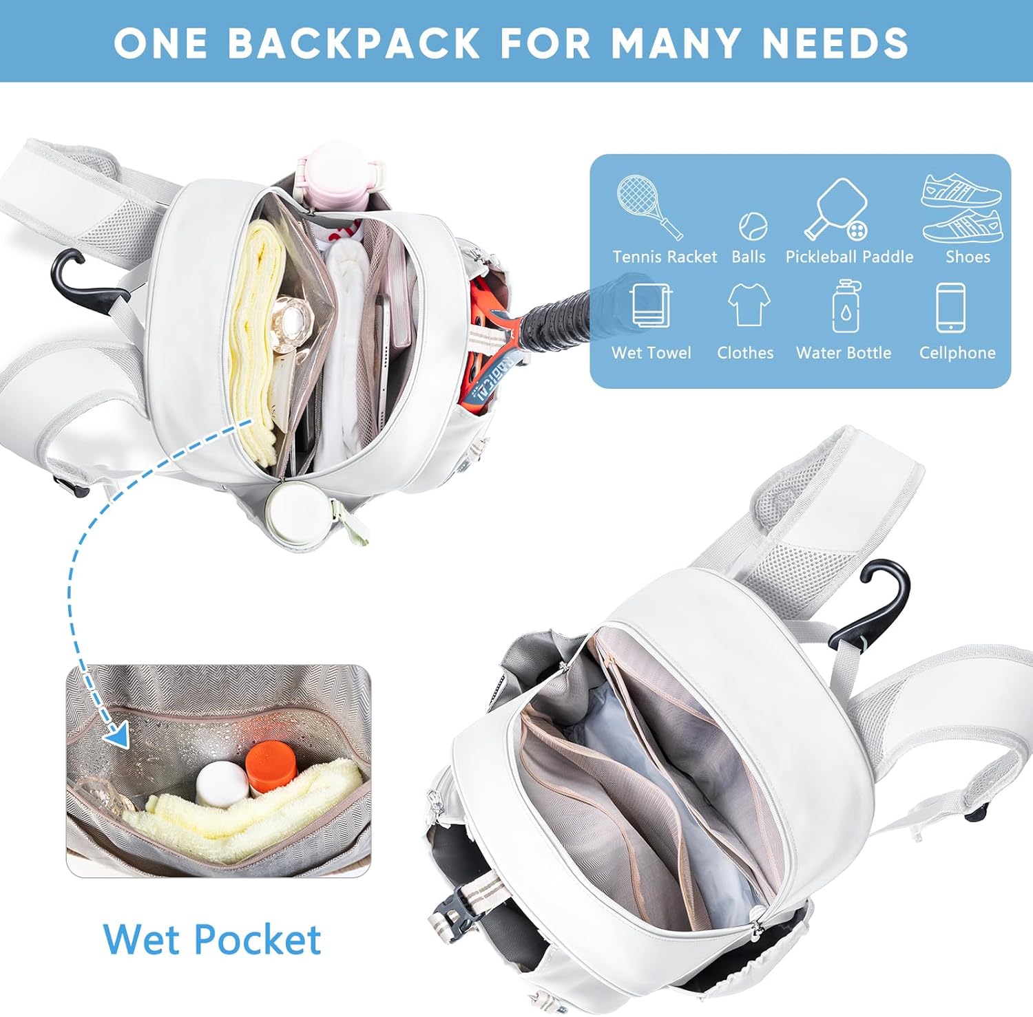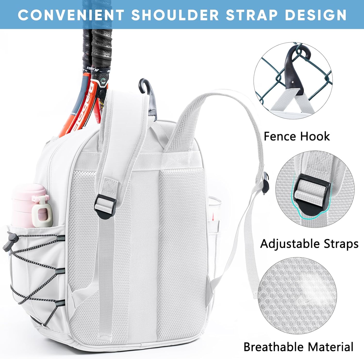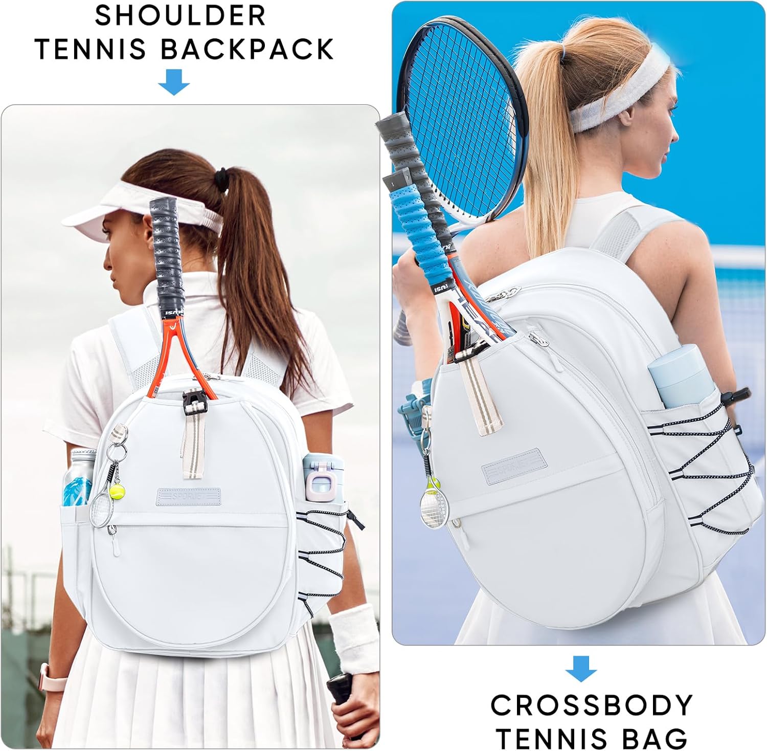 SPORJET Tennis Racket Backpack - Quilted Tennis Rackets Case Water-Resistant for Kids, Women, Men