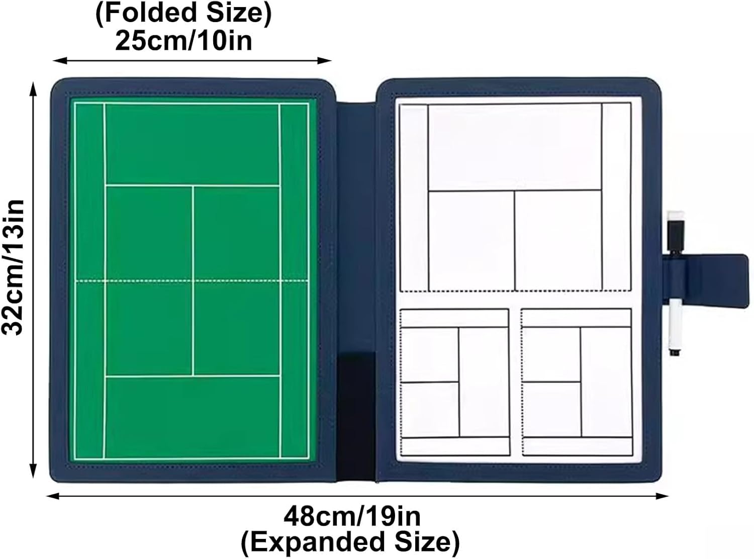 Elevate your game with this Premium Tactical Double-Sided Tennis Board Clipboard. Designed for tennis at all levels, this versatile tool features a dry erase marker board on both sides, giving you the flexibility to diagram plays and strategies with ease. One side displays a full court layout while the other showcases a half court view, allowing you to cover every aspect of the game during practice sessions or pre-match briefings. The smooth whiteboard surface accepts marker ink cleanly and wipes away effortlessly, so you can update your tactics on the fly without any hassle. The clipboard design makes it easy to carry around the court, keeping your materials organized and within reach. This set comes complete with 2 whiteboard pens, so you can get started right away. Whether you are beginners or seasoned players, this tactical board is an essential tool for communicating strategies clearly and effectively. A must-have addition to any tennis toolkit.