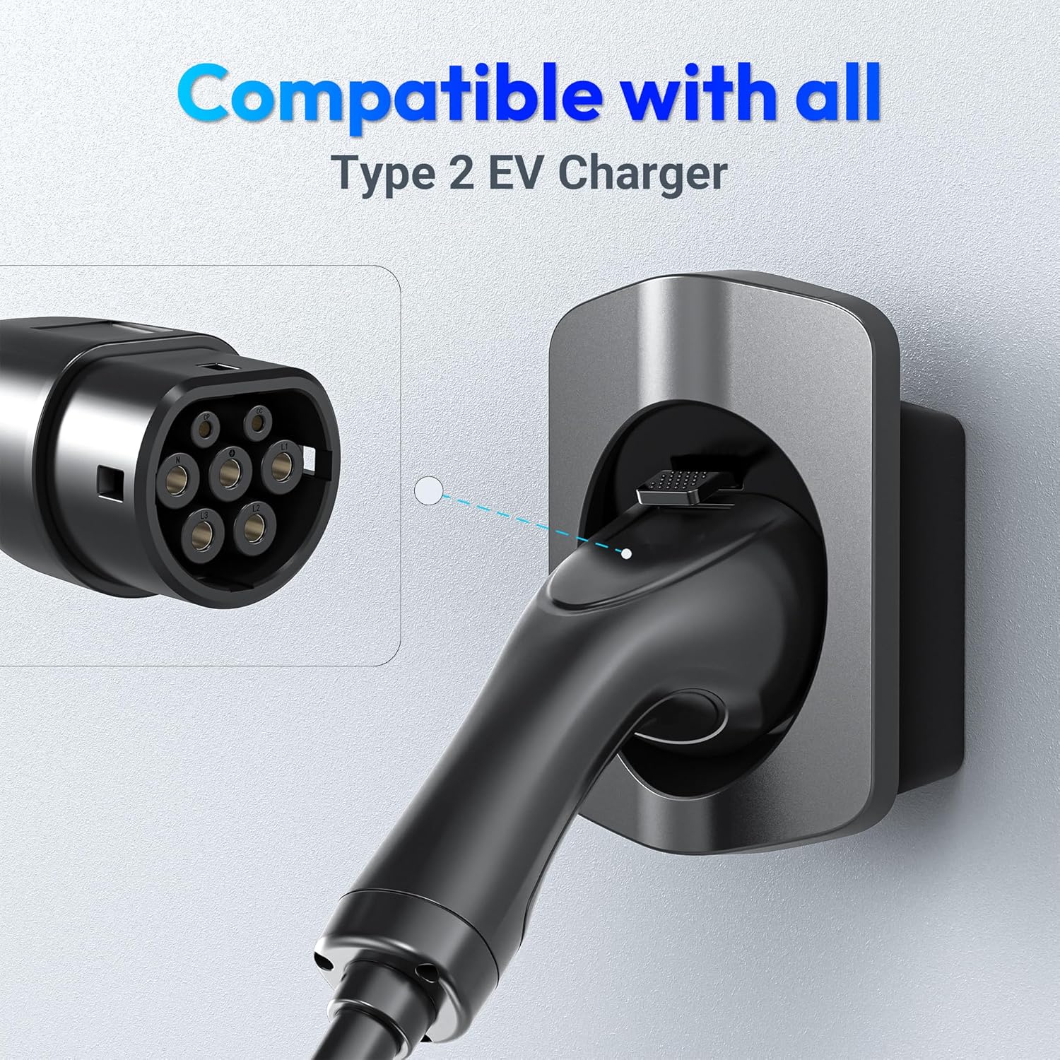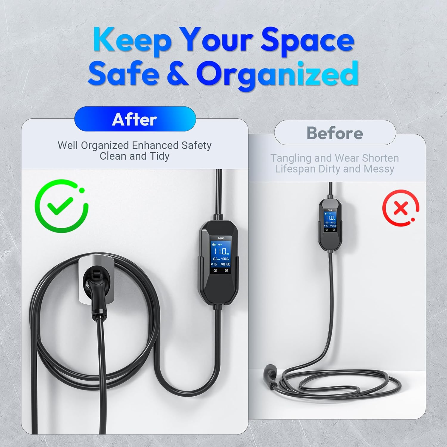 Tera EV Charger Holder Type2 Charger: Heavy Duty Material Electric Car Wall Mount Plug Charging Cable Holder All Weather Organizer Electric Vehicle Charging Station Car Accessories Silver