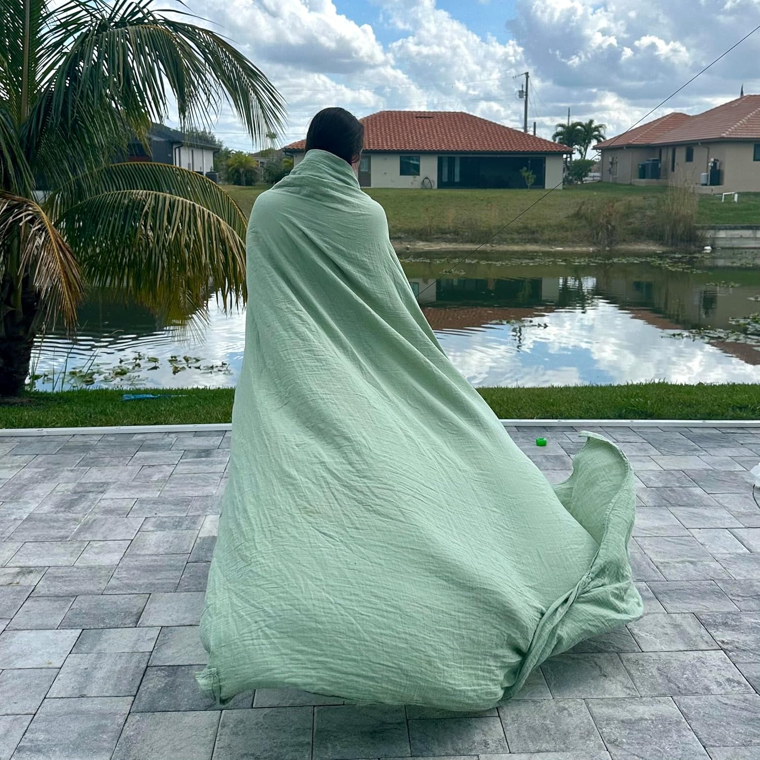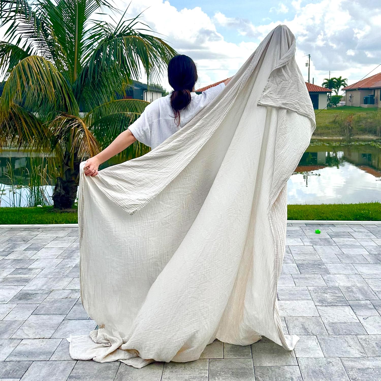 The beloved muslin swaddle blanket, for adults. Perfectly sized, breathable and satisfaction guaranteed from our small business! 1 LAYER: Perfect for extra hot & humid weather. Compact to pack on vacations. Great for hot sleepers. Also helps sleep comfortably during hot flashes, menopause or fevers. 2 LAYER: Great for summers in most climates. Nice for tropical climate during chiller nights. Light and airy with a little warmth. Hot sleeper friendly. 4 LAYER: All season - prevents night sweats just like the thinner versions - but with extra warmth and cozy weight year-round!