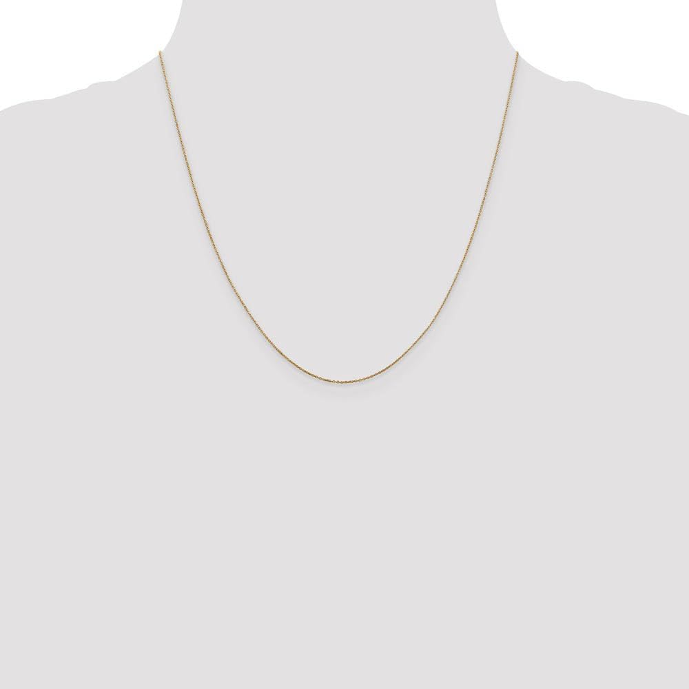 Indulge in the luxury of 14k yellow gold with this delicate, 0.6mm width cable chain enhanced with diamond-cut links. It includes a spring ring clasp and the solid link design is perfect for lightweight gold charms or pendants.