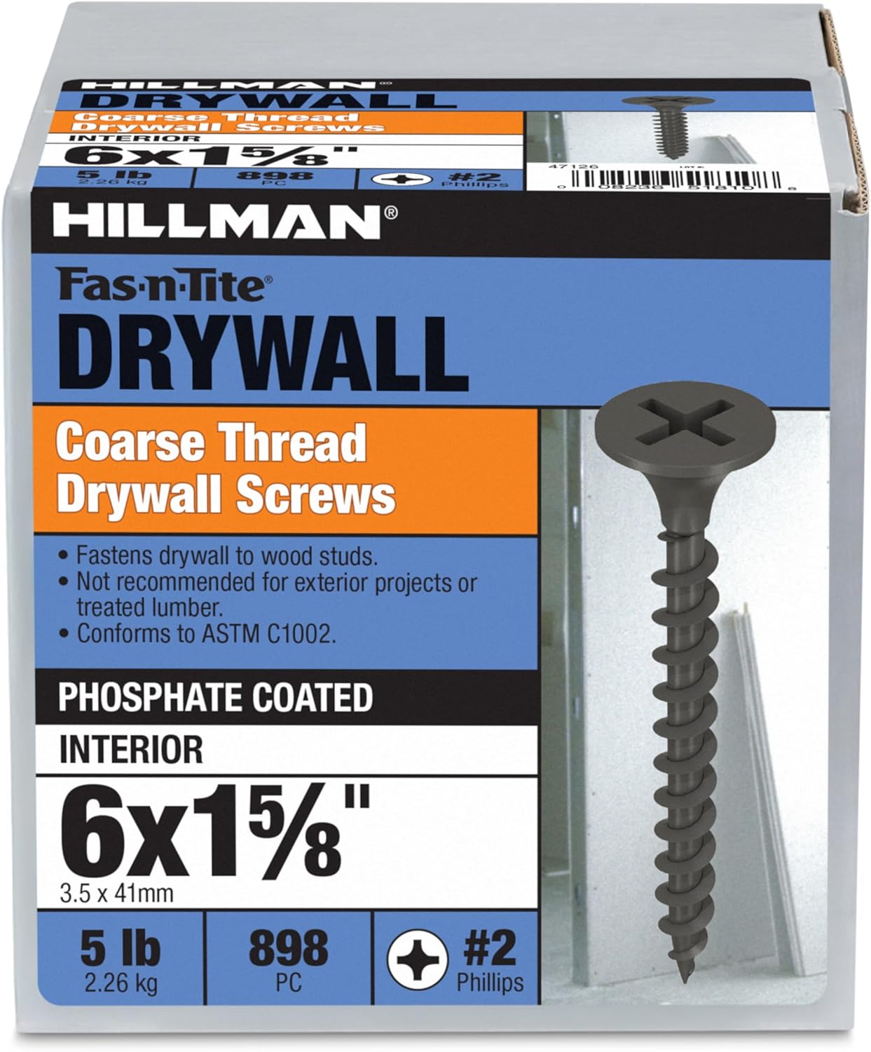 Product Description Coarse Threaded Phosphate-Plated Steel Phillips Drive Drywall Screws feature horizontal indentations that help to securely fasten gypsum (drywall) boards to wood studs. Coarse thread screws are more popular, have higher pullout values and are faster driving. Used in commercial applications. From the Manufacturer Coarse Threaded Phosphate-Plated Steel Phillips Drive Drywall Screws feature horizontal indentations that help to securely fasten gypsum (drywall) boards to wood studs. Coarse thread screws are more popular, have higher pullout values and are faster driving. Used in commercial applications.