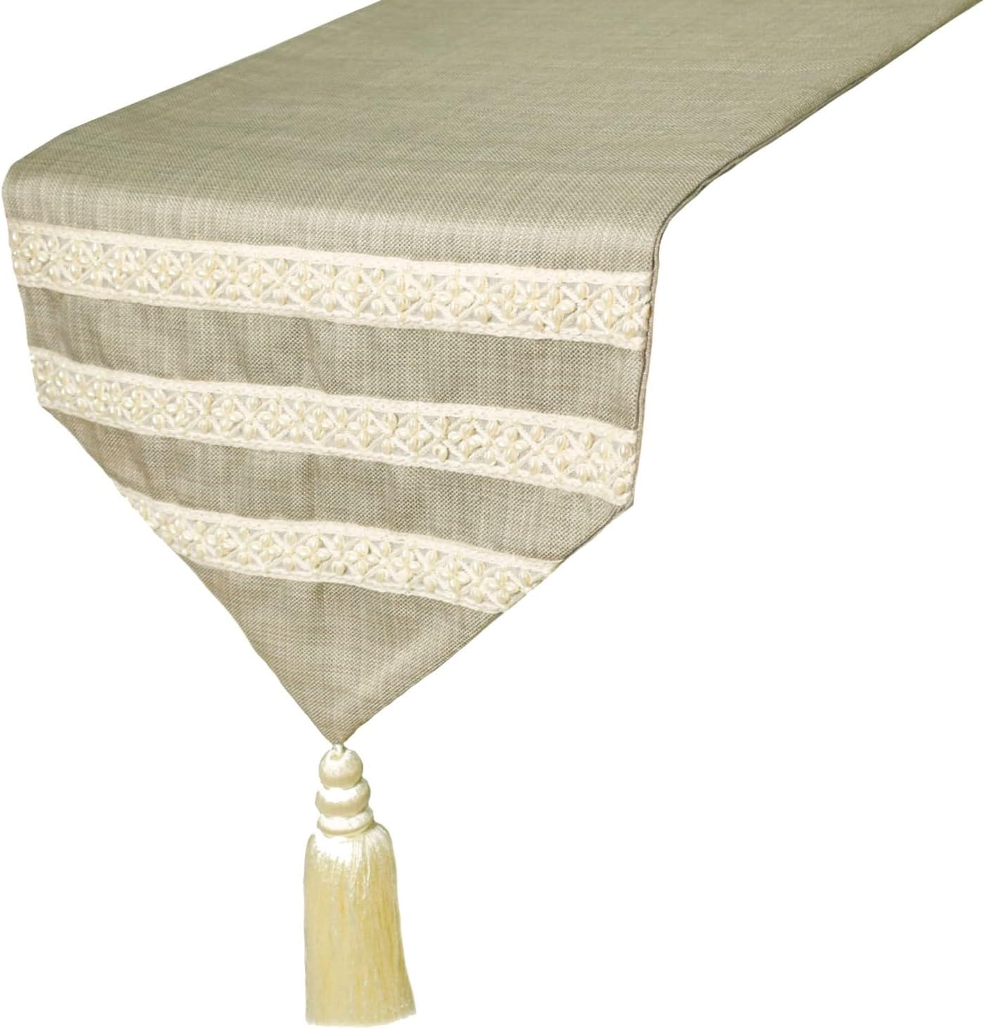 This Lace Symphony Table Runner is made from a beautiful Linen fabric with Lace, Tassels texture and has a complimenting back.Condition: 100% Brand NewDimension: 16 x 120 inchFabric: LinenColor: BeigeColor Map: BeigeThe HomeCentric is the place where luxury is coated in comfort. Coveted by many, we offer a wide range of decorative pillow covers, euro shams, bed runners, table runners and even fabrics for your curtains and other home décor products. These pieces are created by professionals from its design to finishing. Our services reach out from customization to endless effort from your first click to the day we deliver and even after that. Feel The HomeCentric as your home for décor.