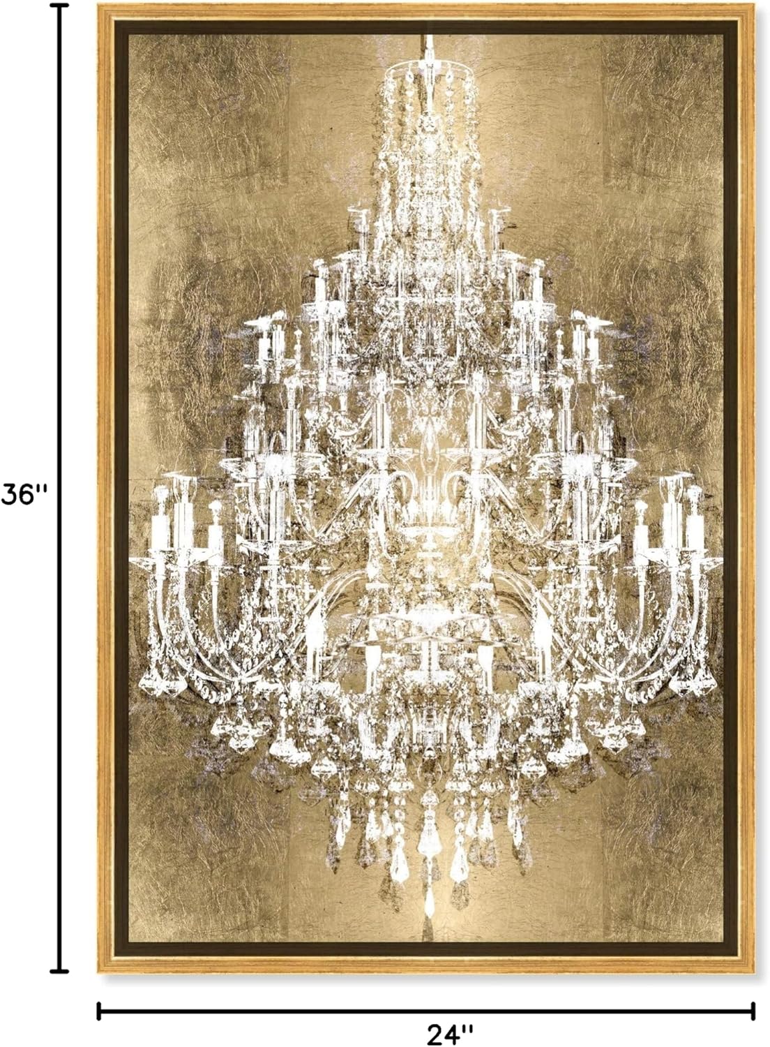 Captivating traditional gold and white chandeliers framed canvas wall art for living room and other interiors featuring stunning and stylish wall decor. Luxury fashion wall art to set the tone! Get it Fast and Flawless Our luxury wall art is carefully wrapped with a layer of shrink-wrap that protects the surface and then wrapped with heavy-duty bubble wrap. Shipped inside a double-layered cardboard box, ensuring its safe arrival to its new home. Let Your Walls Speak Fashion From iconic fashion brands, logo art, shoes, and handbags prints and your favorite haute designers to exclusive makeup and fashion essentials, these art pieces add glamour and sophistication to any decorative style in your home and office. Choose your framed canvas wall art for living room and let it stand out on its own or create your own fashion gallery wall. Perfect for Any Room Our pieces make the perfect living room, office or bathroom wall decor with many designs that can make a small space feel refreshed and a large space feel elegant and chic. Easy and Secure Hanging Includes all necessary hanging hardware, you’ll have your chic fashion piece secured on the wall in minutes! Decorate Like a Celebrity Oliver Gal is renowned for its wall art fashion designs and has been featured by numerous publications including People, Cosmopolitan Magazine, Seventeen Magazine, US Magazine, Reader's Digest, Vogue, and InStyle. Awarded American Quality and Design These framed canvas prints wall art piece is pridefully designed and manufactured in the USA by real artists and award-winning designers and includes a certificate of authenticity by the artist. Support a Women-Owned Business Oliver Gal is a lifestyle brand spearheaded by sisters and artists Lola and Ana, devoted to bringing you exclusive art pieces created to capture life's most haute moments. Long Lasting, Maintenance Free So easy to maintain, doesn’t require any cleaning liquids or water, just use a soft dust brush to gently remove dust when needed.