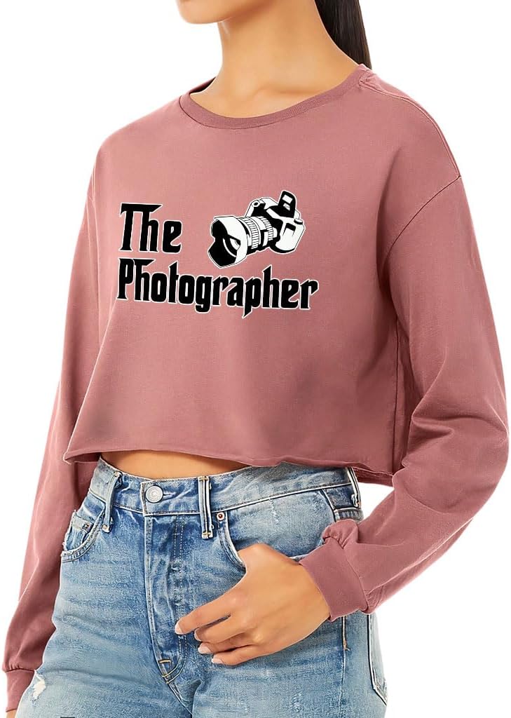 Simple but elegant The Photographer Cropped Long Sleeve T-Shirt is easy to pair with shorts, skirts, and skinny jeans for casual and chic looks. Perfect to layer with cardigan, blazer, jacket or knitwear. You will really love Camera Women's T-Shirt. Suitable for casual, work, date, weekend, holiday, party, club, pub, office, house, outdoor, vacation, maternity etc. A must-have long-sleeve shirt for women!
