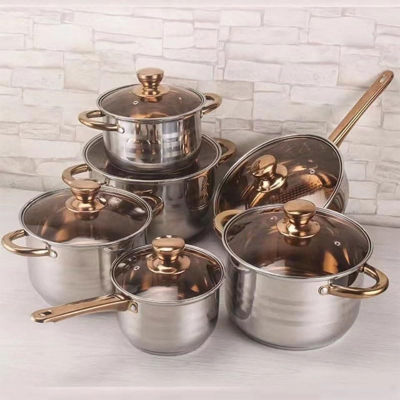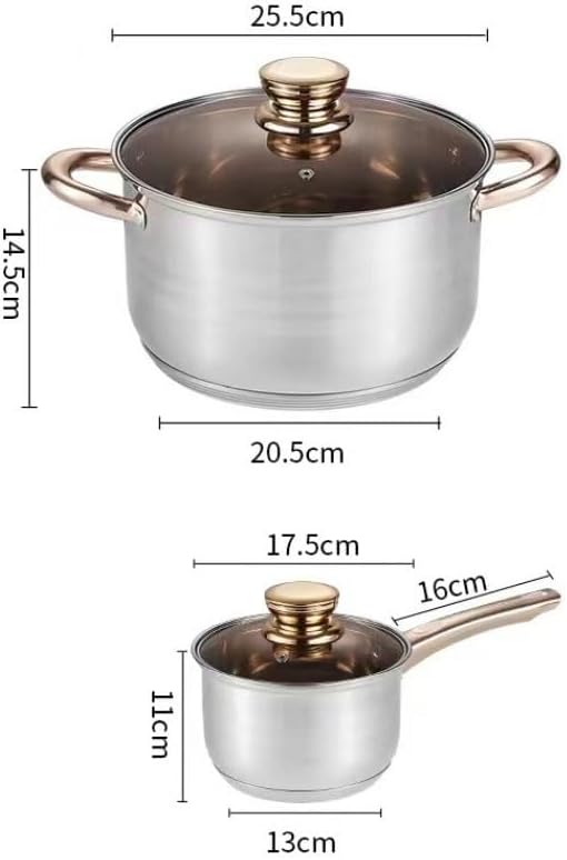 Name: Cookware SetMaterial: Stainless SteelSize: 25.5*14.5cm(As shown)Color: Stainless Steel(As shown)Resizable: NOPackaging: NOIncludes lid: YESPacking list: Cookware Set*1set (excluding other exhibits)Notes:Due to manual measurement, please allow an error of 2-3 cm.The actual color may be slightly different from the picture due to different lightingComplete kitchen set - Includes frying pans, stew pots, soup pots and corresponding lids, meeting all cooking needs. gift for moving house and festive occasions.