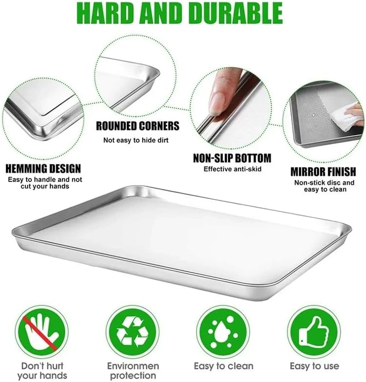 Product: Baking Pan SetMaterial: Stainless steelDimensions: Approximately 32 x 27 x 2.5 cm / 12.6 x 10.63 x 0.98 inchesColor: SilverQuantity: 1/3Notice:Due to differences in monitors, shooting light, and environment, there will be some color difference between the actual color and the color in the picture, which is normal.Due to manual measurement, product dimensions may have an error of 0.5-1 cm.