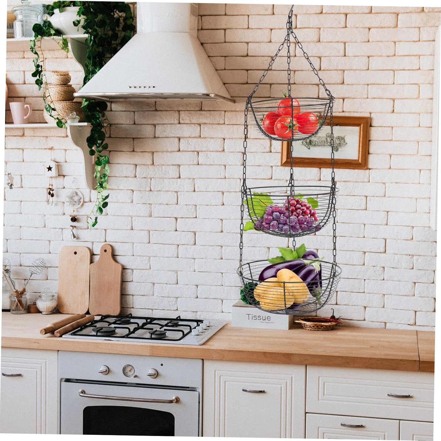 Package Include 1 x hanging fruit basket Characteristics -Size: 29.00X29.00X84.00cm/11.40X11.40X33.01in Home Fruit Basket -Material: iron Hollowed Baskets -Color: black Storage Basket - for living room, kitchen, reading room, add a great addition to your table Hollow-out Fruit Basket. - The design is very beautiful and stylish, also can be used as a desktop adornment Decorative Fruit Basket. - Enough capacity and widely used for storage of fruit, snack, candy, and more Three-layer Fruit Basket. - material and fine workmanship make it more attractive and adorable Food Fruit Tray. - The hanging basket with dual-use design, you can flat or suspend Iron Hanging Baskets.Goods InformationIron Art Fruit Basket This is a fruit hanging basket that made of iron material, for long-lasting use.Snack Storage Basket This hollowed basket can be suspended or just put it on the table.Multi-layer Fruit Basket The creative shape can also decorate your kitchen or living room.Creative Basket for Fruit Featuring multipurpose, it can hold fruits, vegetables, snacks and other items you like