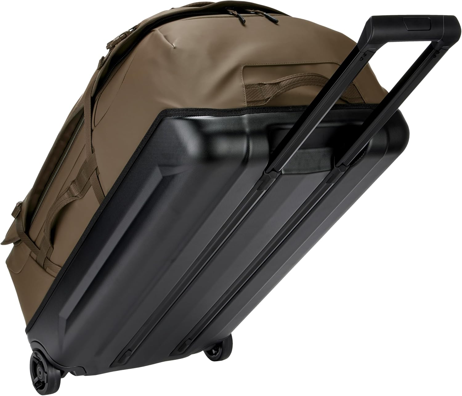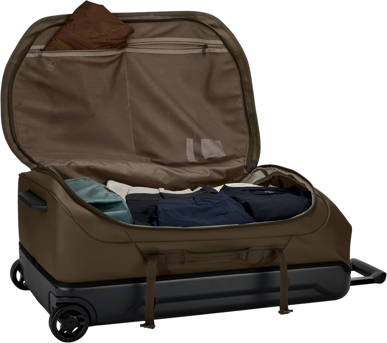 Thule Chasm Luggage collection is made for sport and adventure travel. These weather resistant rollers are designed to withstand the elements of any adventure. Each piece is designed with a duffel style opening with generous packing space for clothing and active gear. The carry on includes an internal max fill line to help you stay carry on compliant. You can also pack an additional 2”when traveling without size requirements. The large wheeled duffel is considered checked luggage and includes external compression straps to adjust the size of your load from one excursion to the next. Constructed with water-resistant tarpaulin fabric to protect belongings from the elements, plus oversized rear wheels to glide over tough terrain, this luggage collection is ready for a weekend away or your next camping adventure.