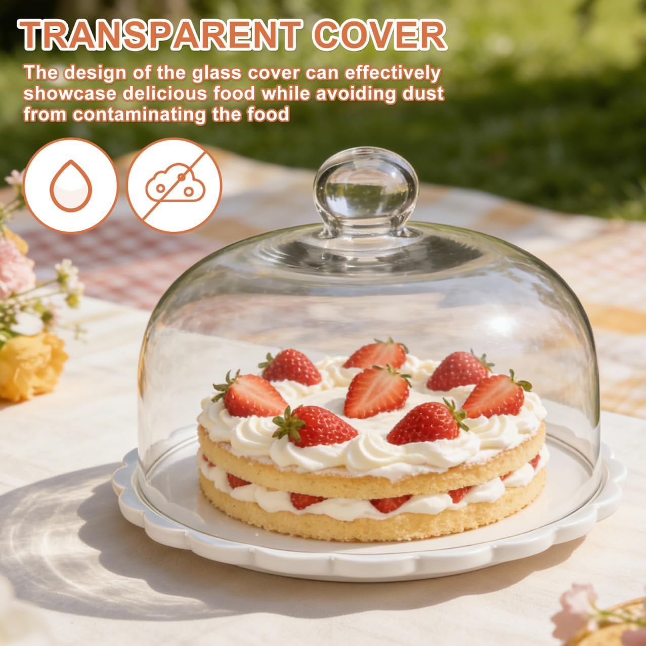 Package Include 1 x Glass Cover 1 x Round Tray Characteristics -Product Info:Glass-covered cake tray - Color: White. - Size: 23.50X23.50X16.50cm/9.24X9.24X6.48in - Material: Glass and ceramic. - This food cover is great for weddings, receptions, buffets, holiday meals, birthday parties, etc Protective Cake Cover - Fine craft make it not easy to deform and safe for food storage cake covers containers - Proper size will not take too much place for keeping cake, snack, breads, fruits from outside pollution. Portable and creative - and crystal clear glass dome will decorate your delicious food dessert dome - and practical, used as good seal lid to protect cake and other small food from polluted food dome coverGoods Descriptioncake covers mesh It can be used for bread, cupcake, or fruits storage cover.bakery tray cover and practical, used as good seal lid to protect cake and other small food from polluted, and with transparent design, you can recognize the food inside without open it for each time.cake stand with lid glass The item is a glass cake cover for keeping food fresh