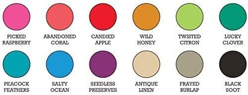 | Ink Color | Abandoned Coral, Antique Linen, Black Soot, Candied Apple, Frayed Burlap, Lucky Clover, Peacock Feathers, Picked Raspberry, Salty Ocean, Seedless Preserves, Twisted Citron, Wild Honey |