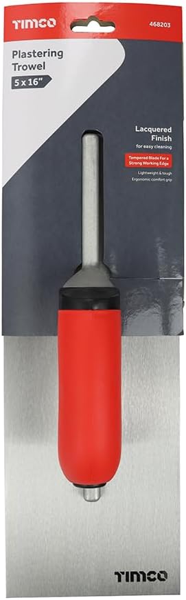 A premium plastering trowel designed for professional application of finishing plaster and adhesive compounds. Featuring a tough and flexible carbon steel blade with an ergonomically designed soft-grip handle, lightweight aluminium shaft for user comfort, control and reduced fatigue and polished for quick and easy removal of excess product.Lacquered finish for easy cleaningTempered blade for a strong working edgeLightweight and toughErgonomic soft-grip handleQuick & easy to clean"Size mm - 125 x 400Size inch - 5 x 16Blade Gauge mm - 0.7Material - Carbon Steel