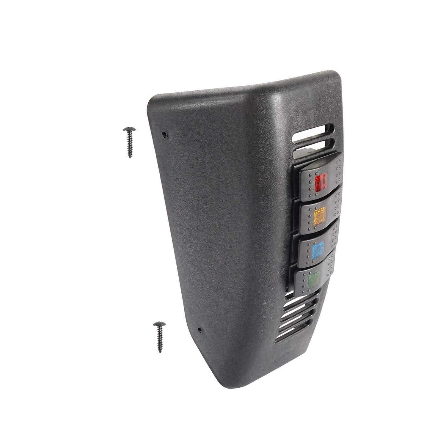 SpecsThe V8 GOD 4-switch panel is a sleek, easy to install accessory that adds four rocker switches to your driver's side. Made to blend in for Jeep's interior trim, this switch pod is made out of plastic and is black with an appropriate texture. The material is high quality and will stand up to ordinary use as well as any other part of interior trim. Straight Forward InstallationDesigned to be a direct fit replacement for the original part.Just put in and tighten the supplied bolts to complete the installation.