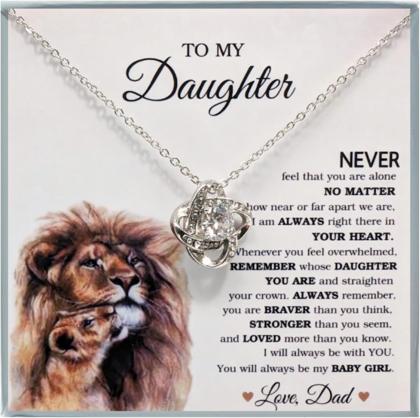Surprise your daughter with a meaningful gift she'll treasure forever! Our father to daughter necklace pendant necklaces are designed to be the perfect daughter gift from mom or dad, including to my daughter from dad. Choose from a variety of designs, including the Love Knot Necklace, a stunning necklace featuring a cubic zirconia crystal, and the Interlocking Hearts necklace, symbolizing never-ending love, perfect for 21st birthday gifts for daughter. Makes great mother and daughter necklaces. Daughter birthday gifts from mom or dad. These from dad to daughter necklaces, makes great birthday gifts for daughters. Gifts for daughters from mothers. Don't miss out on these timeless love necklace pieces for daughter.