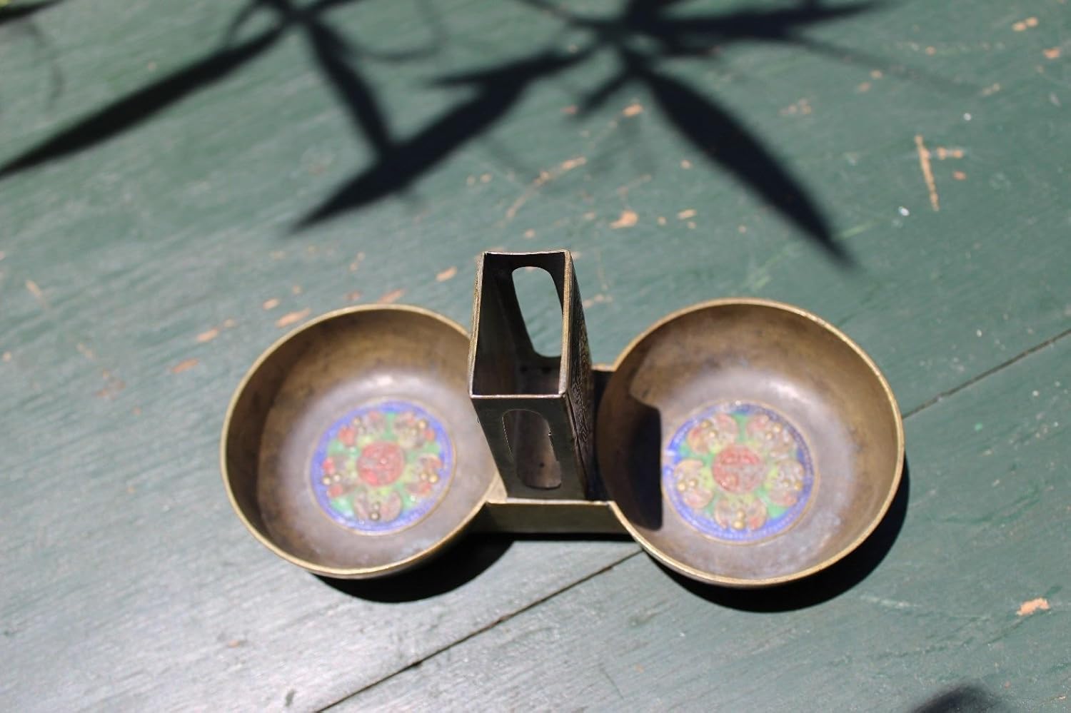 Tobacciana: vintage tobacco/opium cloisonné set Height: 3.25 inches = 8.5 cm Width: 7.5 inches = 19 cm Weight: 10.7 oz. = 302 g Condition: Good for the age, no major problems Provenance: bought in antique store in Florida, USA.Exported By ExportYourStore