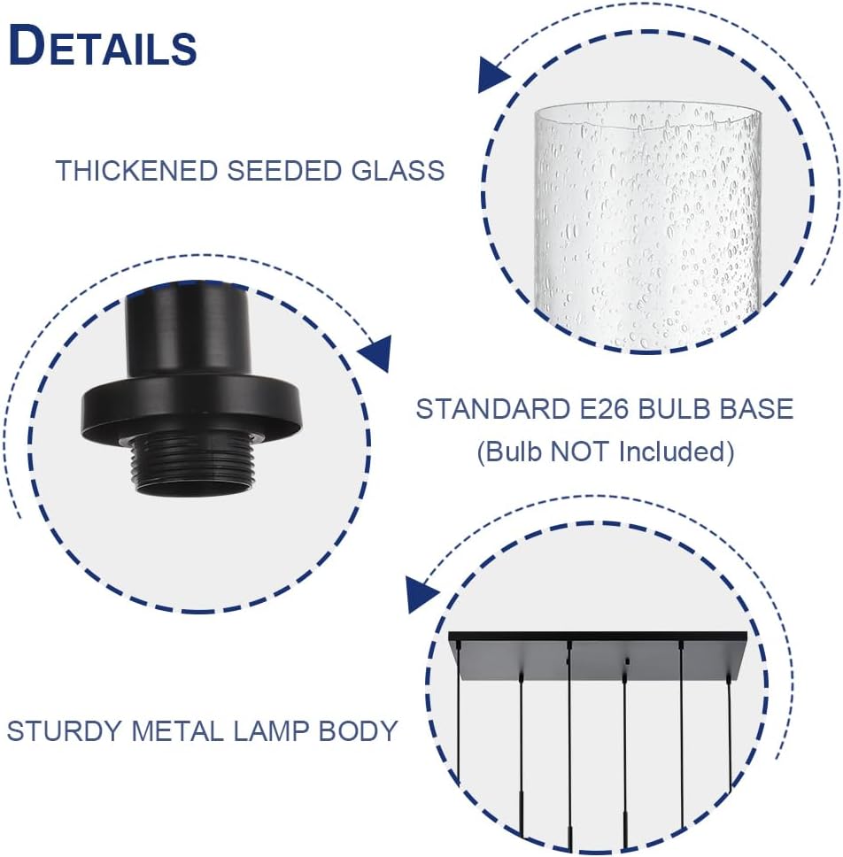 | Included Components | (NOTE: Bulb NOT Included), Instruction Manual, Pendant Light Fixture, Seeded Glass * 6, Tool Kits |