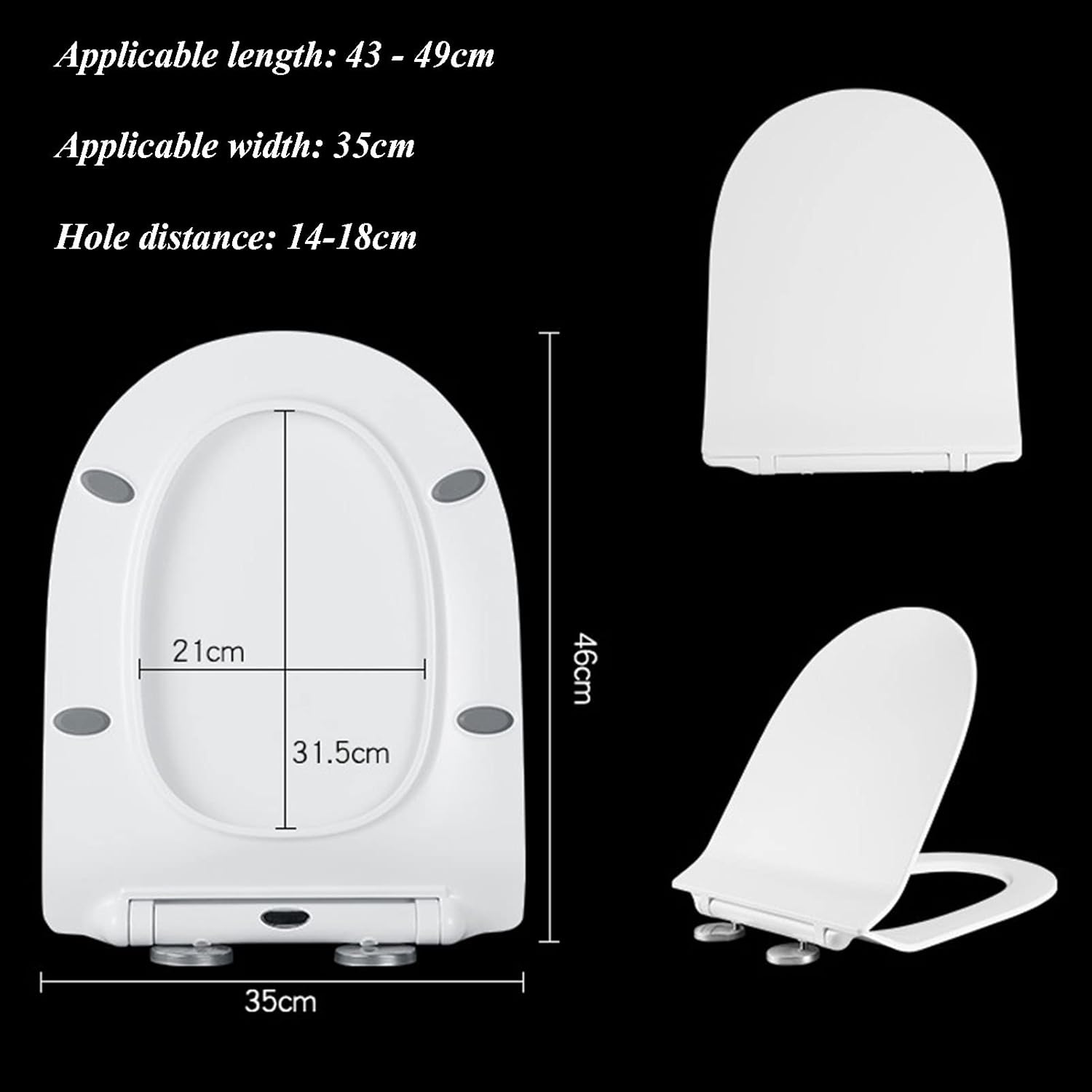 Thoughtful Design: This round toilet lid is ergonomically designed to enhance the comfort of the seat. It fit the most standard Round toilet. Please confirm the shape and size before purchasing. No Slam: The toilet cover can be slow down and silent when closing, the closing speed is very slow and quiet, it won't wake up your family at night. And it doesn't pinch and protects the ceramic toilet bowl. Easy to Clean: Toilet seat is made of high-quality thick polypropylene plastic, which is resistant to stains, chips, scratches, cracks on the surface, it's easier to clean than ordinary plastic. Easy Installation: The toilet cover is easy to install, it only takes a few minutes to complete the installation, and the product is light weight and can be installed by yourself, easy to disassemble and wash. Quick Release Function: This soft close toilet seat is the top fixing,only need one screw driver to release it. so you can clean toilet bowl easily Toilet Seats Screws: The Toilet Seat Screws are made with steel and premium plastic material for long time usage, no slippage, no rusting, and excellent tightly fit. Big Toilet Ring: The toilet seat Ring is bigger enough to suit to the different weight people.