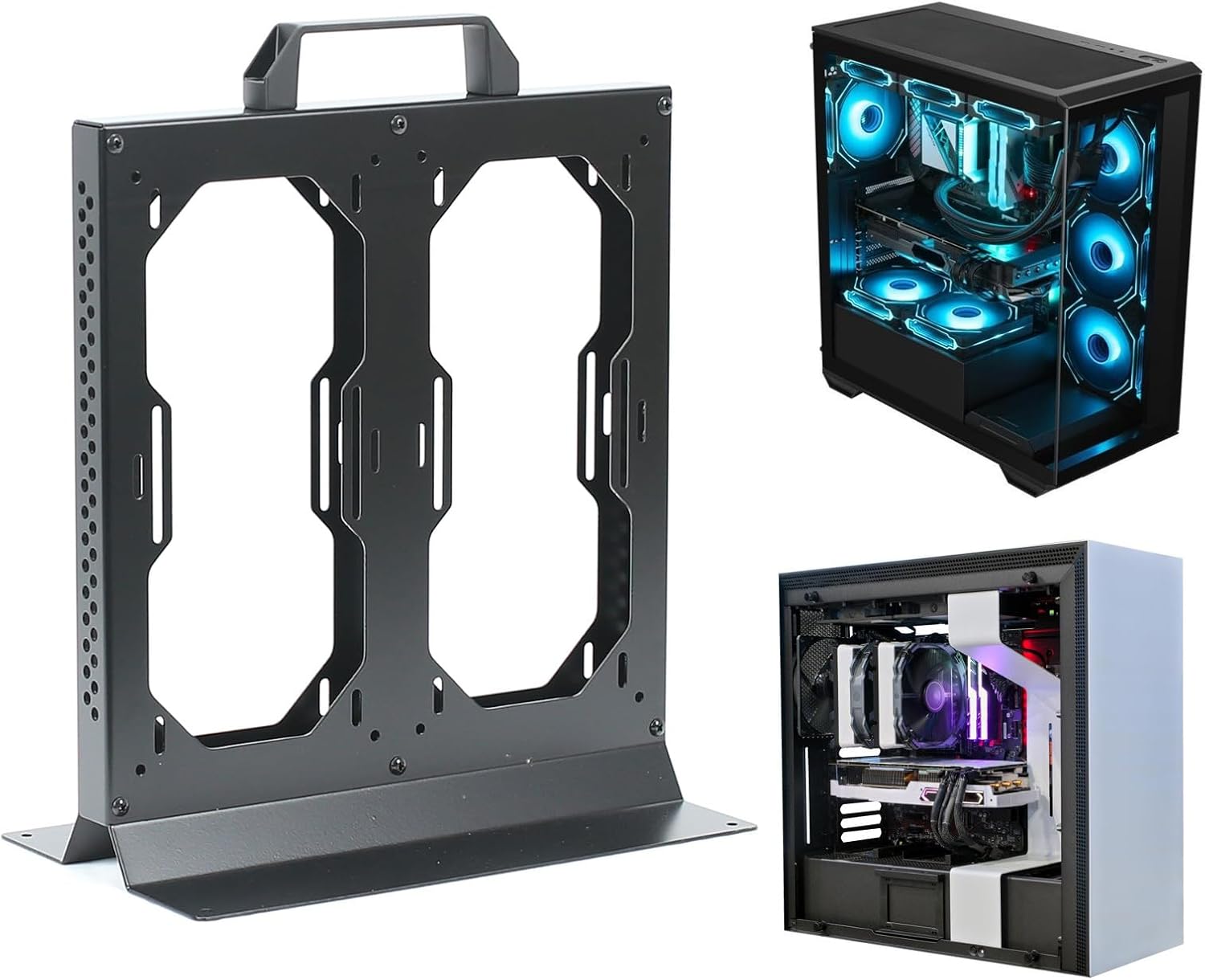 Toolless Installation External Metal Radiator Bracket For High CoolingFeatures:The 240x2 external radiator bracket features high efficiency two cooling design with metal construction, superior heat dissipation for sustained during intensive computing tasks.Toolless installation and universals compatibility with multiple PC cooling accessories ensures effortless setups across various desktop and laptop configurations.for gaming enthusiasts, professional designers, and multitasking users requiring stable thermal management during extended work or high FPSs gameplay.Optimizes workspaces efficiency home offices or gaming stations while maintaining cooling for CPU/GPU systems during rendering or gaming.Engineered with corrosions metal computer mounts, this space saving cooling withstands demanding environments while organizing cable and hardware neatly.Specifications:Materials: MetalPackage Includes:1PC External Water Cooling Dock BracketNote:Please allow 0-1cm error due to manual measurement. make sure you not mind before bid.Due to the differences between different monitors, the Pictures may not reflect the actual of the item.
