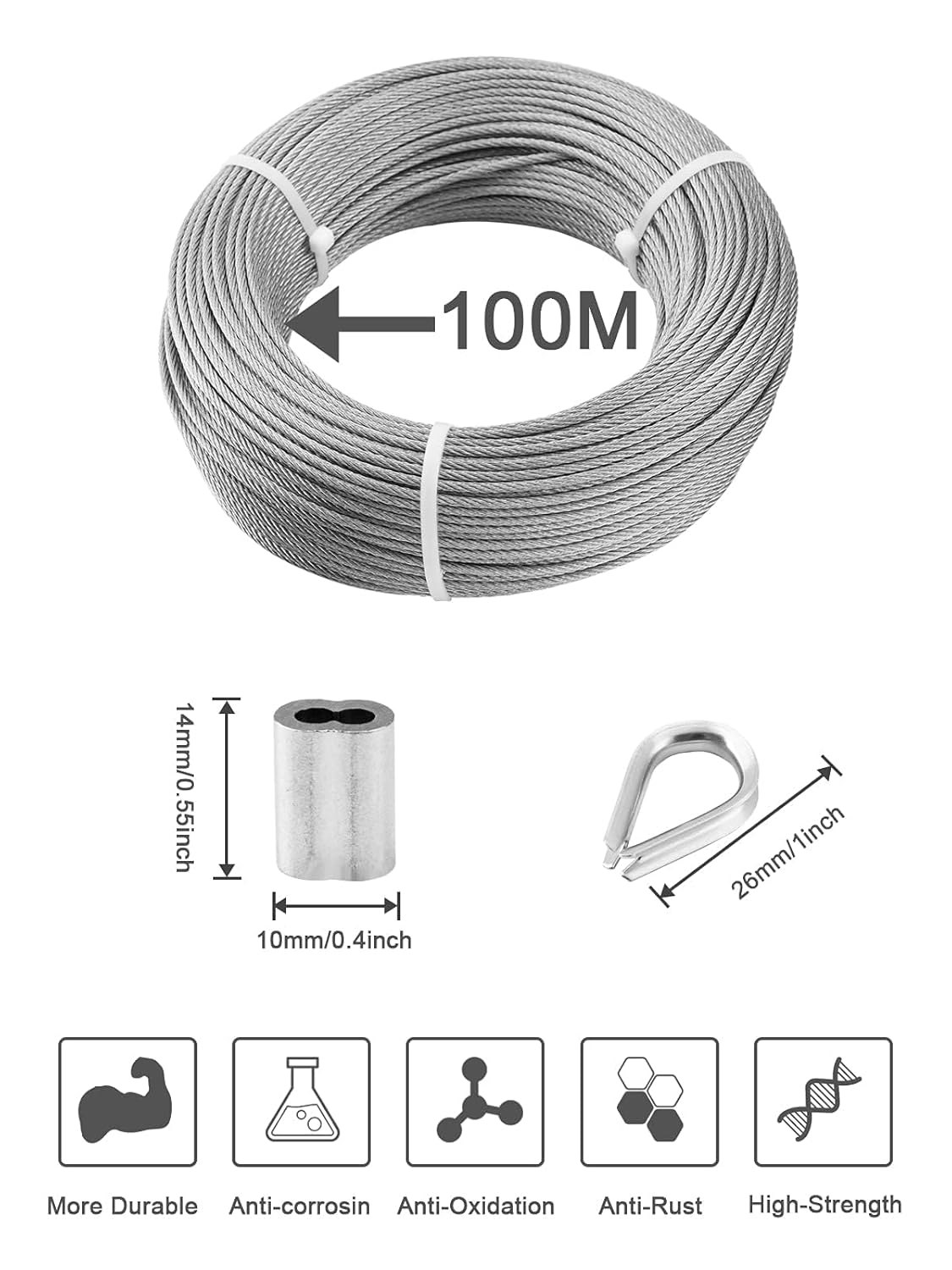 | Included Components | 1/8 wire cable,crimping sleeves 1/8,wire rope thimbles 1/8 |