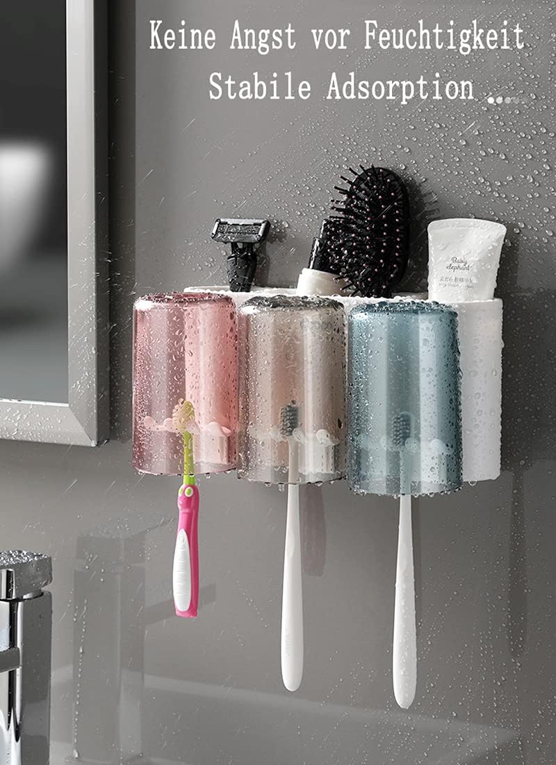 Product name: wall mounted toothbrush holdersFeatures: Toothbrush holder inverted cup design, dusoof and quick drainage. The cup is firmly fixed on the bracket and drains quickly, effectively keeping the toothbrush and cup dry and clean.Function: Not only a toothbrush holder and toothpaste dispenser, but also a storage tray. The storage area at the top of the toothbrush holder is equipped with multiple compartments, where you can put toothpaste, soap, combs, cosmetics, razors, etc., to save more space on the countertop and make your bathroom more tidy.Easy to install: The wall-mounted toothbrush holder is equipped with seamless stickers, easy to install, no drilling, no tools, no falling or damaging the wall. This sticker is only suitable for smooth tiles, smooth marbles and smooth glass.Wall-mounted toothbrush holder size:2 pieces (15.2×12×11.2cm)3 pieces (23×12×11.2cm)4 pieces (31.4×12×11.2cm)Toothpaste holder (6.7×6.2×11.2cm)Material: We have been pursuing product quality. This wall-mounted toothbrush holder is made of ABS material, odorless and high temperature resistant. This is a toothbrush holder worth using.Customer Service: If you have any questions, please email us. Customer service will reply you within 24 s.