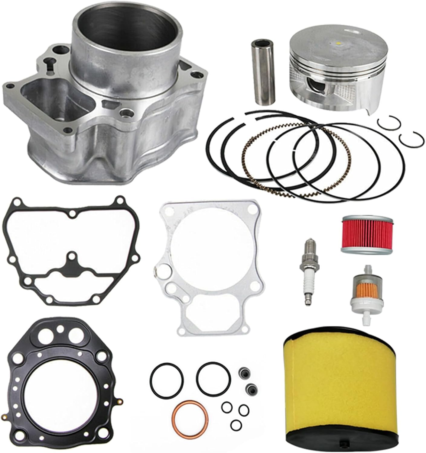 Description:The gaskets use performance materials to increase durability and provide greater reliability.Includes all gaskets pictured to rebuild top end.Kit is for standard bore size.Replaces Part Number:Cylinder: 12100-HR0-F00Piston: 13101-HR0-F00Cylinder Base Gasket: 12191-HR0-F01Cylinder Head Gasket: 12251-HR0-F01Cylinder Head Cover Gasket: 12315-HR0-F01Ring Set: 13010-HP0-A01Pin, piston: 13111-HP5-600Circlips, piston: 13112-MAT-000Condition: NewPiston Material: High-Grade Cast AluminumActual Displacement: 475ccBore Size: STDFits:for HONDA TRX 500 Rubicon 2015 - 2019