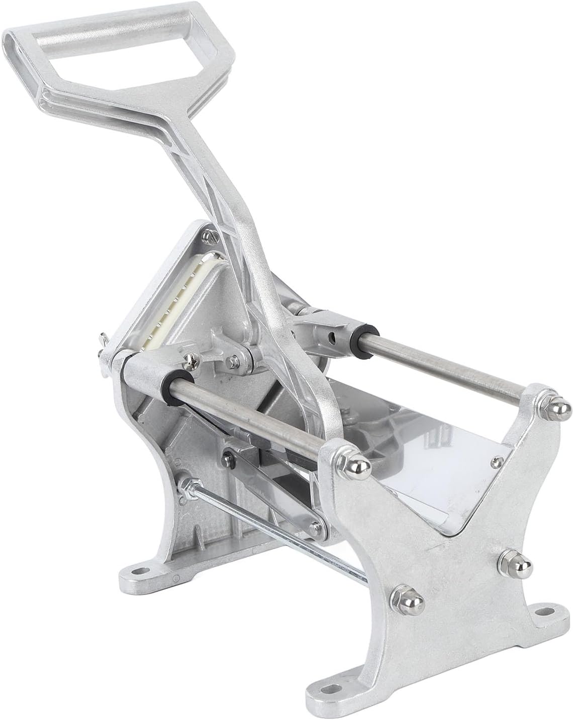 Feature:Commercial-Grade: Constructed from food-grade stainless steel, this French fry cutter is built to withstand heavy-duty use in commercial settings, ensuring durability and reliability.Multi-Purpose: Suitable for cutting potatoes, onions, meats, and more, providing versatile options for food processing and catering to various needs.Efficient and Convenient: Featuring a professional heavy-duty design for high cutting efficiency, this cutter offers easy operation and fast, uniform cutting of ingredients, making it ideal for use in fast-food outlets, restaurants, and other commercial kitchens.Specification:Item Type: French Fry CutterMaterial: Stainless SteelWeight: Approx. 3658g/129.0ozSize:Total Length: Approx. 46cm/18.1inWidth: Approx. 15cm/5.9inBottom Length: Approx. 25cm/9.8inPackage List:1 x French Fry Cutter 1 x Handle 1 Pack x Material Package 2 x Molds 1 x English InstructionNote:Please allow some error in manual measurement.