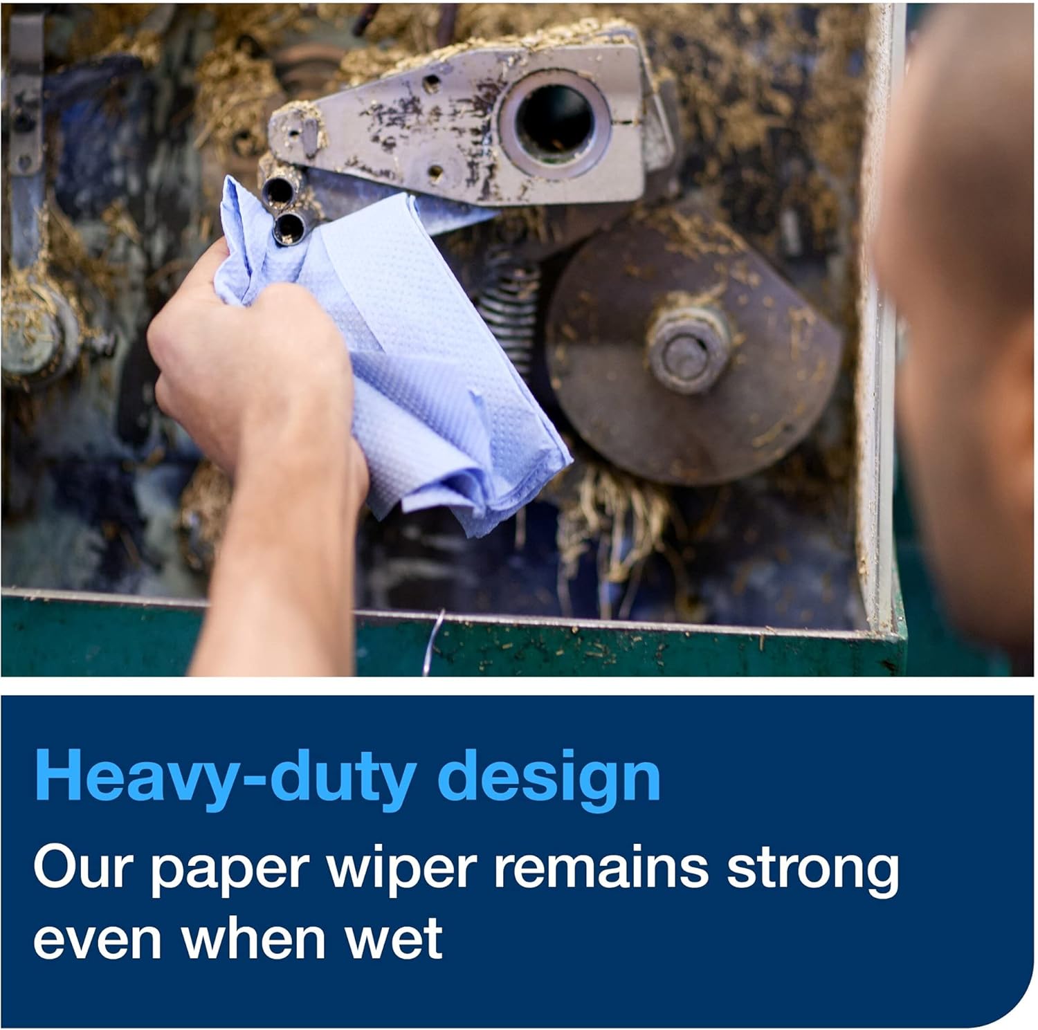 Tork Heavy-Duty Paper Wiper Blue W1: Paper towels aren't always durable enough to get the job done, but our tough, multi-purpose wipers are up for any industrial task, like absorbing excess oil and water spills. While liquids can quickly dissolve paper towels, this highly absorbent option is ideal for cleaning because it stays strong when wet. These industrial paper towels are made from recycled fibers so they're kinder to the environment. And with their easy-tear design, staff will only take what they need.Advantages at a glance:+ Our toughest multi-purpose wipers+ High-absorbency+ Removes oil, grease, and water+ Made with recycled fiber