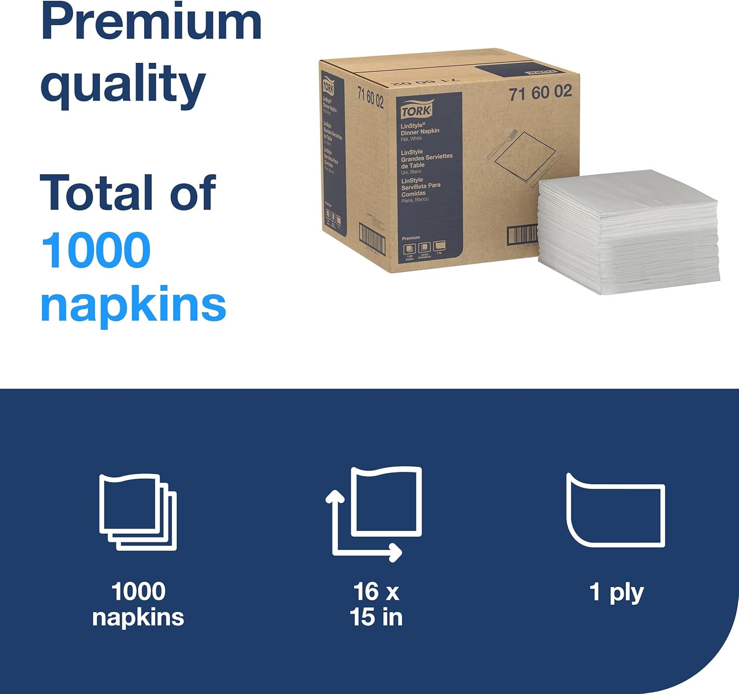 Tork LinStyle Dinner Napkin White: Impress guests with the exceptional quality and elegance of our cloth-like disposable dinner napkins, designed with the look and feel of real cloth. Ideal for rolling silverware or folding. Each napkin is noticeably softer and bulkier than standard dinner napkins, providing the ultimate in absorbency, hand feel, and overall quality. Best of all, there are no hidden costs such as linen service fees, replacement fees, or laundering costs. Each napkin is used only once, saving staff time on table bussing and ensuring a hygienic experience for guests. Advantages at a glance: + Premium quality + Look and feel of real cloth + Disposable dinner napkin + Contains 100% virgin fibers