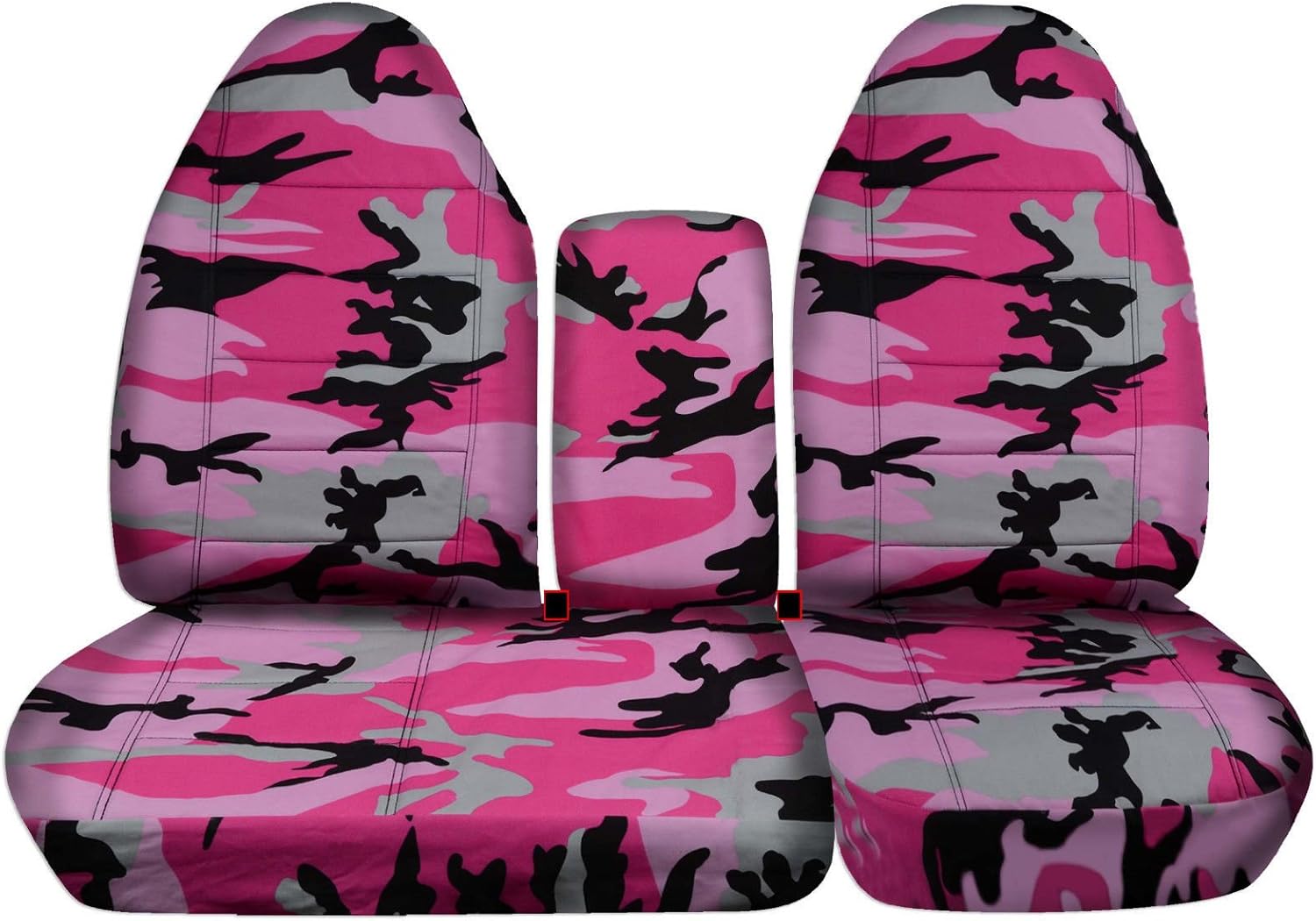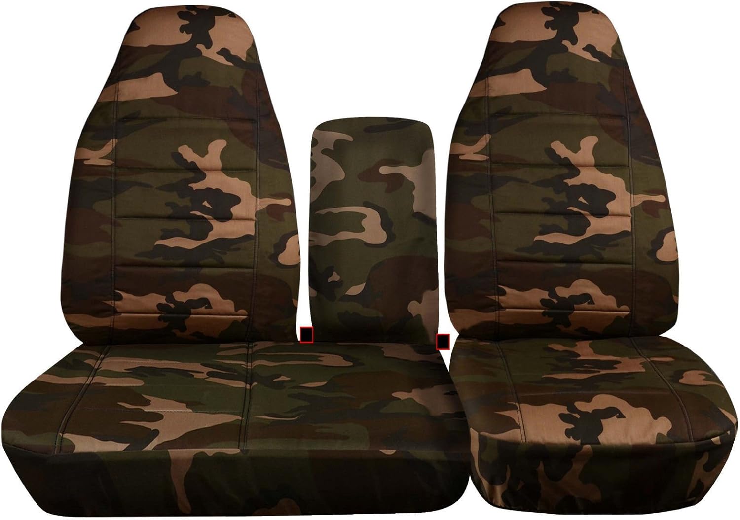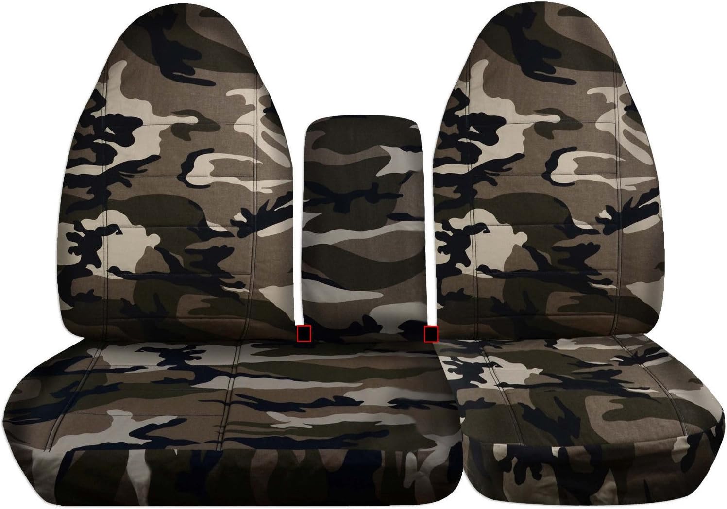A set of front, 40/60 split bench, desert storm camo truck seat covers for a 1997 to 2000 Ford F-150 with an opening center console. Covers seat and headrest in one piece. Be sure to visit our storefront ("Totally Covers") where you can find the largest selection of seat covers, to satisfy even the most demanding of tastes. If you can't find what you are looking for, please contact us ("Totally Covers") We can make seat covers for ANY car, truck, van, RV or SUV in a variety of 145 colors and prints, and even add your name/text and logo/design on them!