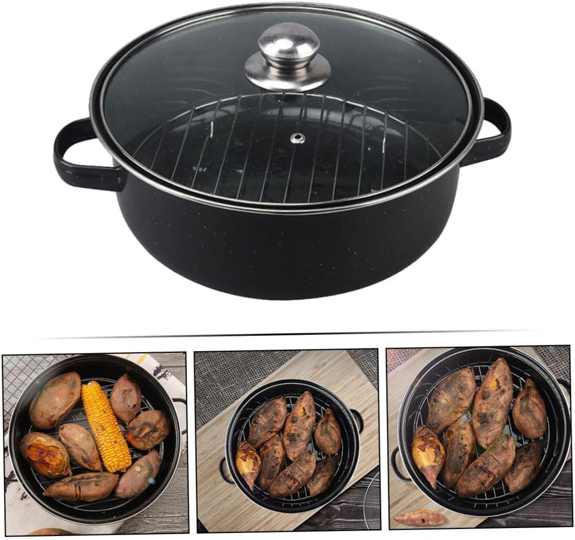 Package List 1 x pot with lid Characteristics -Material:Glass, iron enamel cookware -Color:Black convenient roasting pot -Size:32.00X28.00X14.00cm/12.58X11.00X5.50in household roasting pan - Cooking Pot can withstand high temperature, which is not easy to deform and break convenient roaster. - Can be used for roasting much food, such as potatoes, corns, sweet potatoes, chicken wing, Chinese chestnut, etc kitchen roasted pan. - Widely applied in home, food store, restaurant, camping and other places in need roasting pan. - The ergonomic double handles is more convenient to move and use, safe and secure, very practical roaster oven. - The special design can keep food from rolling and sliding with a delicate and practical design roaster pan.Goods Informationcooking accessory Smooth surface for easier to clean and wash.household roasting pot It can be used to bake sweet potato, corn and so on.turkey roaster It can withstand high temperatures, which can be used for a long time.turkey pan for oven want to have a multi-functional Cooking Pot? If so, our covered roaster is carefully prepared for you