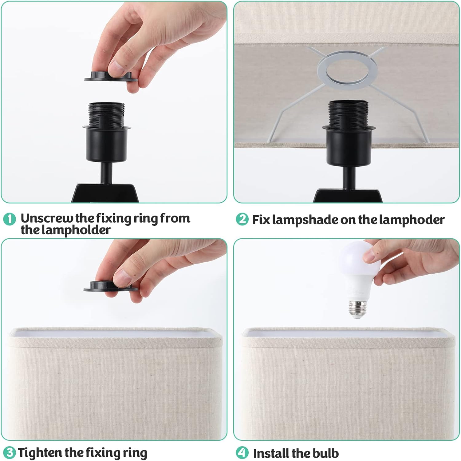 | Material Type | Black metal body & base, Well-made cream fabric shade |