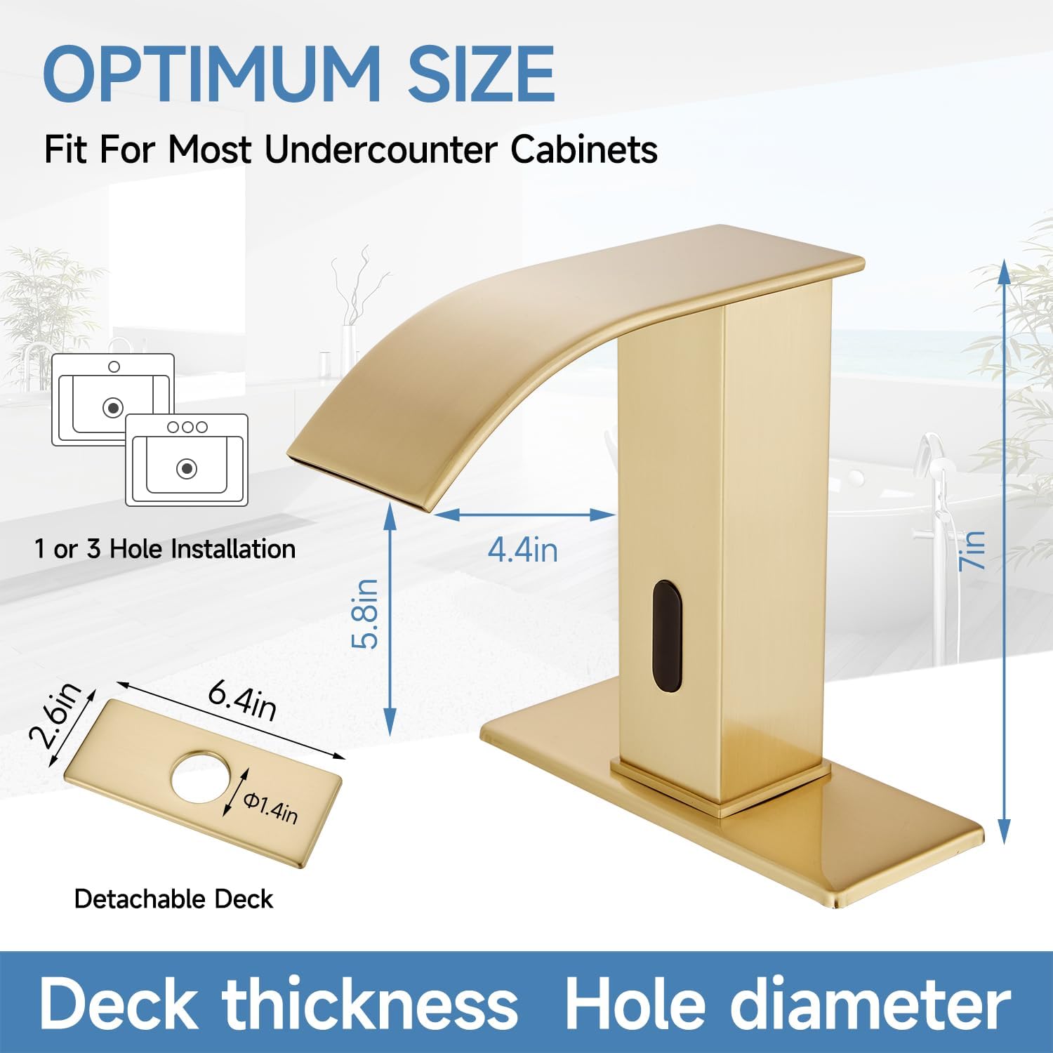 | Included Components | 4 x fixing screw (for control box), 1x control box, 1x 1/2-1/2 water hose (for mixing water), 1x touchless bathroomfaucet body with mounting stem and nut, 1x user manual, 1x hole cover deck, 1x water mixing valve |