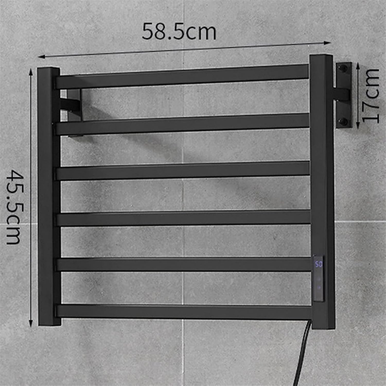 GREAT FOR SMALL SPACES: This space-saving drying rack provides space to air dry clothing, towels, delicates, lingerie, sports bras, yoga pants, athletic gear and more without taking up any floor space; Easily mounts on a flat wall surface with the included hardware; Use in laundry rooms, utility rooms, kitchens, bathrooms, garages or on balconies; A great laundry drying system for small-space living in college dorm rooms, apartments, condos, RVs and campersPower: Small: 58.5*45.5cm\\u2014\\u201472wMedium: 58.5*77cm\\u2014\\u201472wLarge: 59.5*82.6cm\\u2014\\u2014133wSpecifications:Material: Aluminum alloyInstallation method: punchDistance from the wall: 6.2-6.7cmRated Voltage And Frequency: 110-220VHeating Temperature: 50-70 Celsius (122-158 Fahrenheit)One-key constant temperature: 55 CelsiusWater Protection Rating: IPX4Note: 1.Please allow 1-3cm (0.4-1.18") difference due to manual measurement and slight color variation for different display setting.2.With curve heated bars,heating up a few hours in advance when needed,you will feel warm and soft towels after shower or in the cold morning.