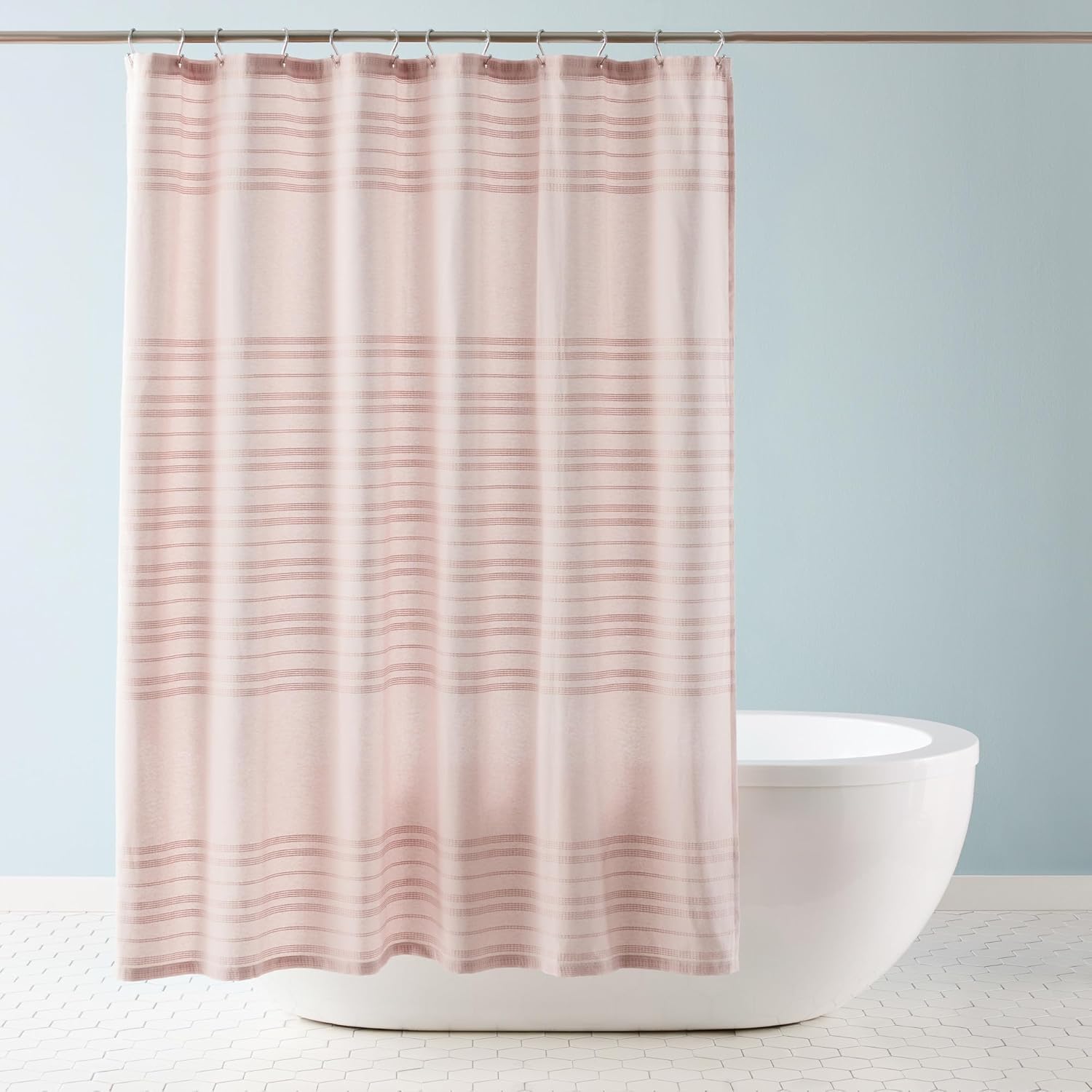 Transform your bathroom into a sleek and contemporary space with the Town & Country Everyday Sophia Textured shower curtain. Crafted from soft solid stripes, this shower curtain brings a minimalist touch to your bathroom decor. Made from a cotton-rich fabric, it instantly elevates your shower or bathroom ambiance with its clean and modern aesthetic. The Sophia Textured Solid Stripe 70"x72" shower curtain offers a timeless modern look with durability to last. Reinforced top hem stitching prevents tears. This shower curtain is made with cotton-rich fabric, and the stripe pattern adds simplicity with a touch of luxury to any bathroom.