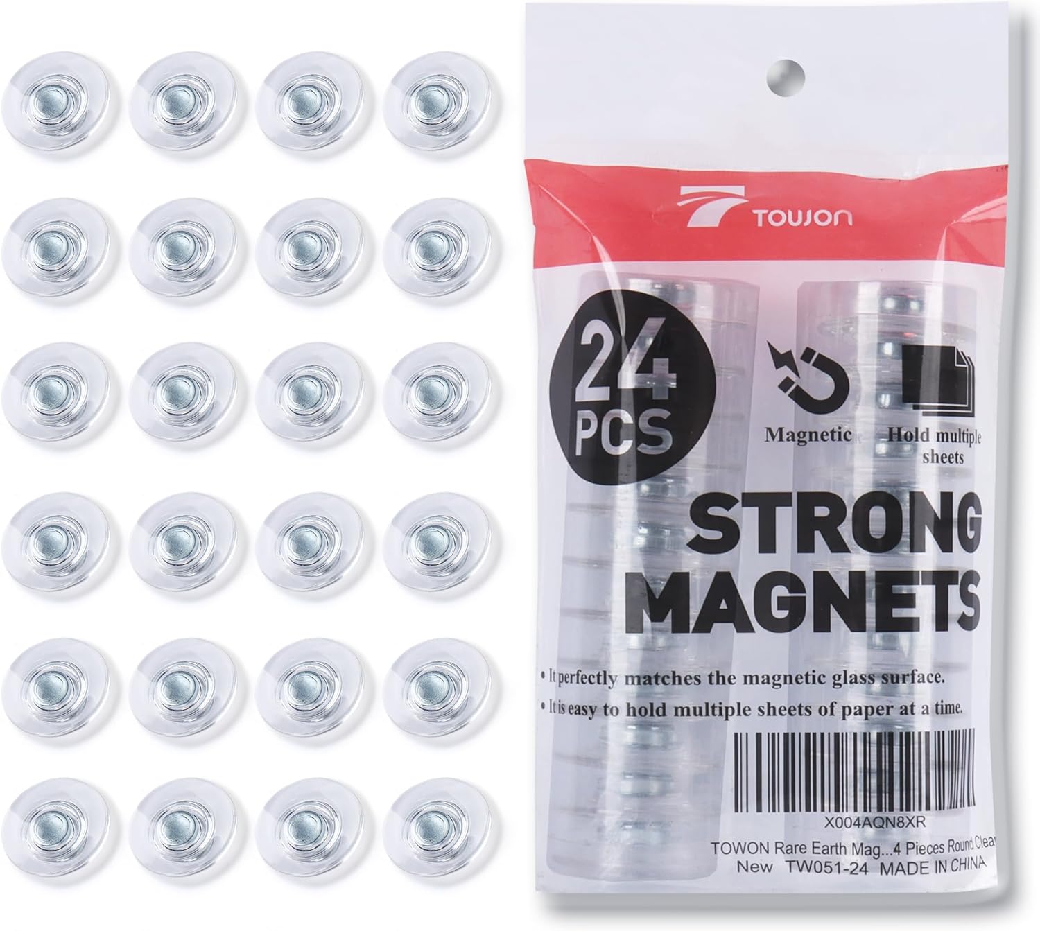 TOWON Rare Earth Magnets Large, Strong Magnets for Glass Whiteboard and Dry Erase Board, 36 Pieces Round Clear