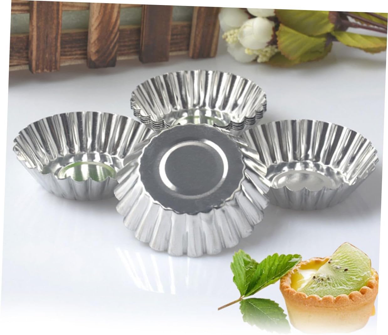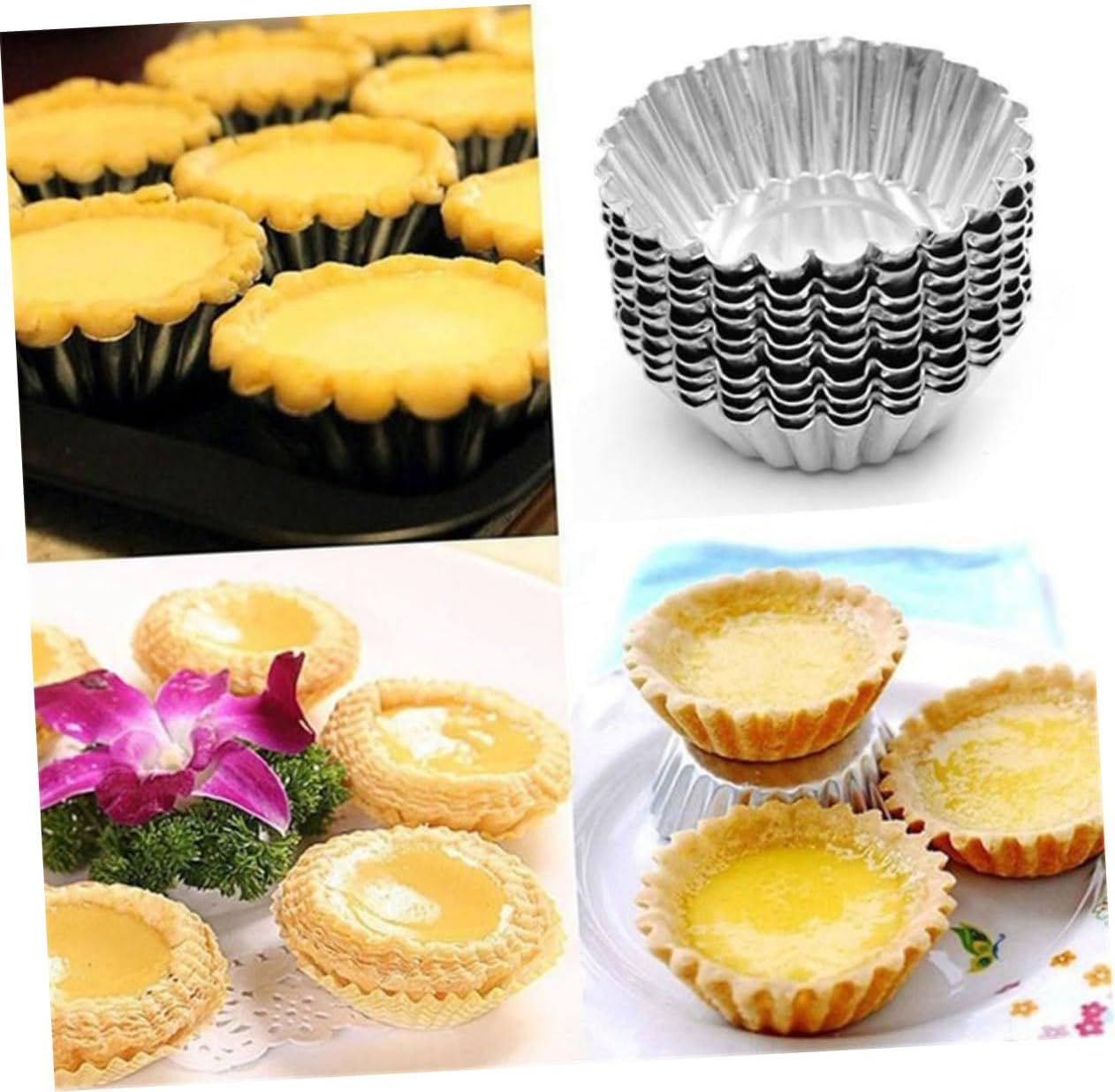 Package Include Egg Tart Mold Features - Material: Tinplate small tart molds. -Product Info:Egg tart mold - Size: About 7 x 2cm / 2.8 x 0.8inch egg muffin mould. - Color: Silver egg tarts mould. - Easy to use and clean. Nonstick coating is designed for easy release and cleaning egg tart baking tray. - Quick baking. Have excellent and quick heat conductivity, evenly baking makes your cakes work well and delicious cupcake baking tray. - Made of premium tinplate, the baking cups are safe, and baking molds metal. - Wide application. Perfect for small cakes, pies, muffin cupcakes, cheese cakes, chicken and turkey pot pie, egg tarts, souffles, custard cakes, cookies, chocolate, puddings, , quiche, Cheesecakes and so on Metal cake molds.Goods DescriptionPudding Moulds Nonstick coating is designed for easy release and cleaning.egg moulds Perfect for small cakes, pies, muffin cupcakes, cheese cakes, chicken and turkey pot pie, egg tarts, souffles, custard cakes, cookies, chocolate, puddings, , quiche, Cheesecakes and so on.cookie molds This is a set of 100 pieces egg tart molds.egg muffin mould It has excellent and quick heat conductivity, which makes your cakes work well and delicious