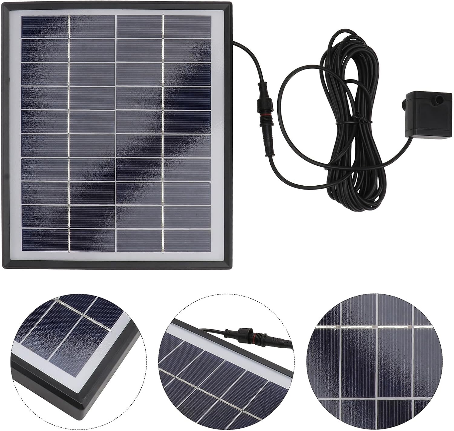 Package Include 1 x fountain pump Characteristics - Outlet diameter: 8mm Garden Water Pump - Color: Black. - Water pump power: 12V 5W Fountain Pump. - Maximum head: 1.9 meters -Product Info: fountain pump - Material: Plastic. - Cable length: 2.5 meters - Maximum flow: 500L/h. - Size: 22.5 x 19.5 x 5 cm. - Maximum water height: 90CM (depending on sunlight intensity) - It has a built-in brushless motor for longer life and lower energy consumption Water Pump - Suitable for bird baths, fish tanks, small ponds, garden decorations, oxygen water circulation Bath Fountain Pump. - Once exposed to plenty of sunlight, it will start working within 3 seconds. Make sure the panel is not blocked and keep the filter inlet at the bottom free of debris. - Made of high grade material, durable in use. - This pump runs automatically and is powered with no need of additional power, which is and environmentally friendly.Goods InformationGarden Water Pump Are you looking for a professional, yet fountain pump? Are you in search of a sturdy, trustworthy tool that can do multiple jobs at once? , ! Our professional fountain pump must meet you needs. Bath Fountain Pump It is one of the for you
