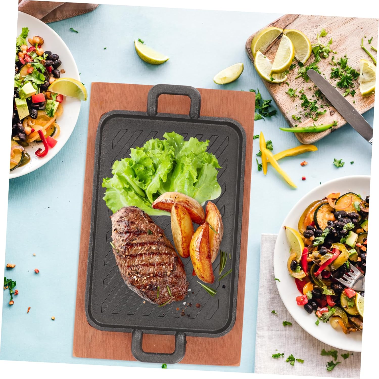 Package List 1 x Griddle 1 x Griddle Tray Features - Size: 31.00X19.00X4.00cm/12.18X7.47X1.57in nonstick grilling pan -Material:Wood,Iron iron grilling pan -Color:Assorted iron griddle - The workmanship of this Grill Pan is , and you will have a experience in using it griddle for grill. - The durable pan is cooking various foods and has a wide range of applications grill pan. - The sturdy material helps keep the food hot, and it is designed with handles for protecting your hands griddle pan. - The simple design will give you a wonderful experience and bring you a mood nonstick grill pan. - Whether you are hosting a party or cooking for your family, this Grill Pan will help you to make foods stove top griddle.Goods Descriptiongriddle It is for small or medium-sized family gatherings with friends or large family gatherings.grill plate because our Grill Pan can meet your need.barbecue grilling pan If you are looking multipurpose Grill Pan, then your research is over here.meat grill pan Adopted of reliable material, it is practical and durable for long time use, not easy to break, bring you much convenience
