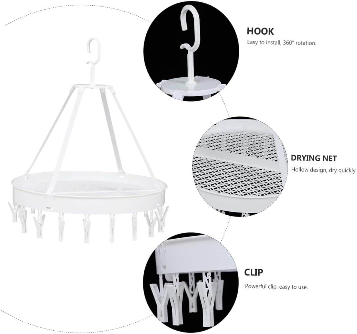 Package Include 1 18 x clips 4 x hanging lanyards Characteristics -Color: White -Product Info:Drying rack -Material: PP -Size: 50.00X50.00X40.00cm/19.65X19.65X15.72 in. - These clothespin can hold and clip many small items, like socks, towels, etc bras drying hook. - This laundry underwear hanger holds many small items in 1 hanger for multipurpose drying or storage underwear drying rack. - Makes all clothespins easy to access, easy to hold and unload clothes drying hook. - It can be folded and stored when not in use, saving more space bras drying hanger. - Lightweight design, suitable for home, outdoor, camping, travel and vacation socks drying rack.Goods Descriptiontowels drying hanger The clothes drying rack with 18 clips is made of material, which is safe and , not easy to break or deform, long serving life.towels drying rack Foldable design, saves more space, bring more conveniences.socks drying hook The windproof hook prevents the clothes from falling
