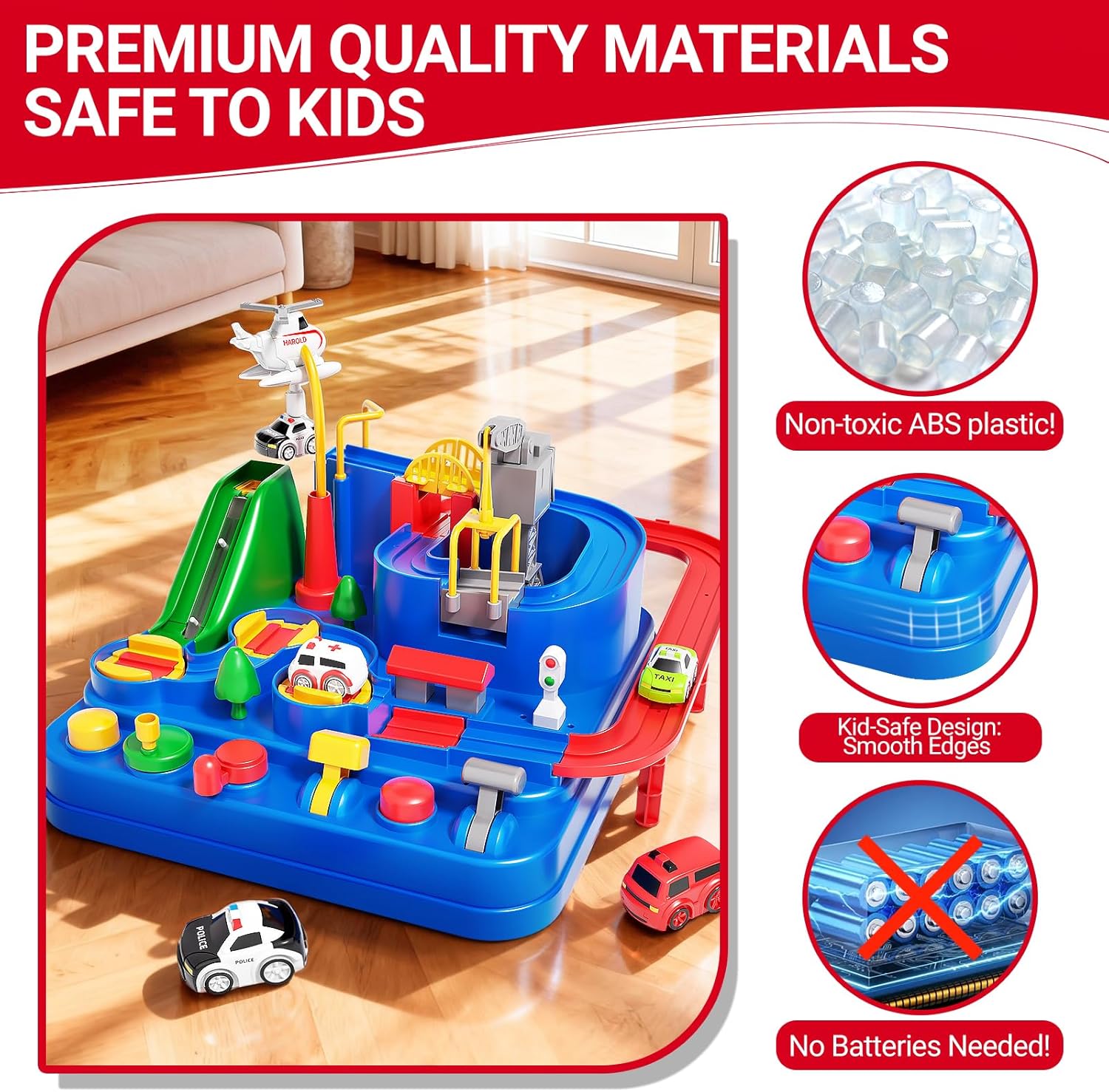 | Other Special Features of the Product | Montessori-inspired, Interactive Track with Challenges, Magnetic Rescue Airplane |