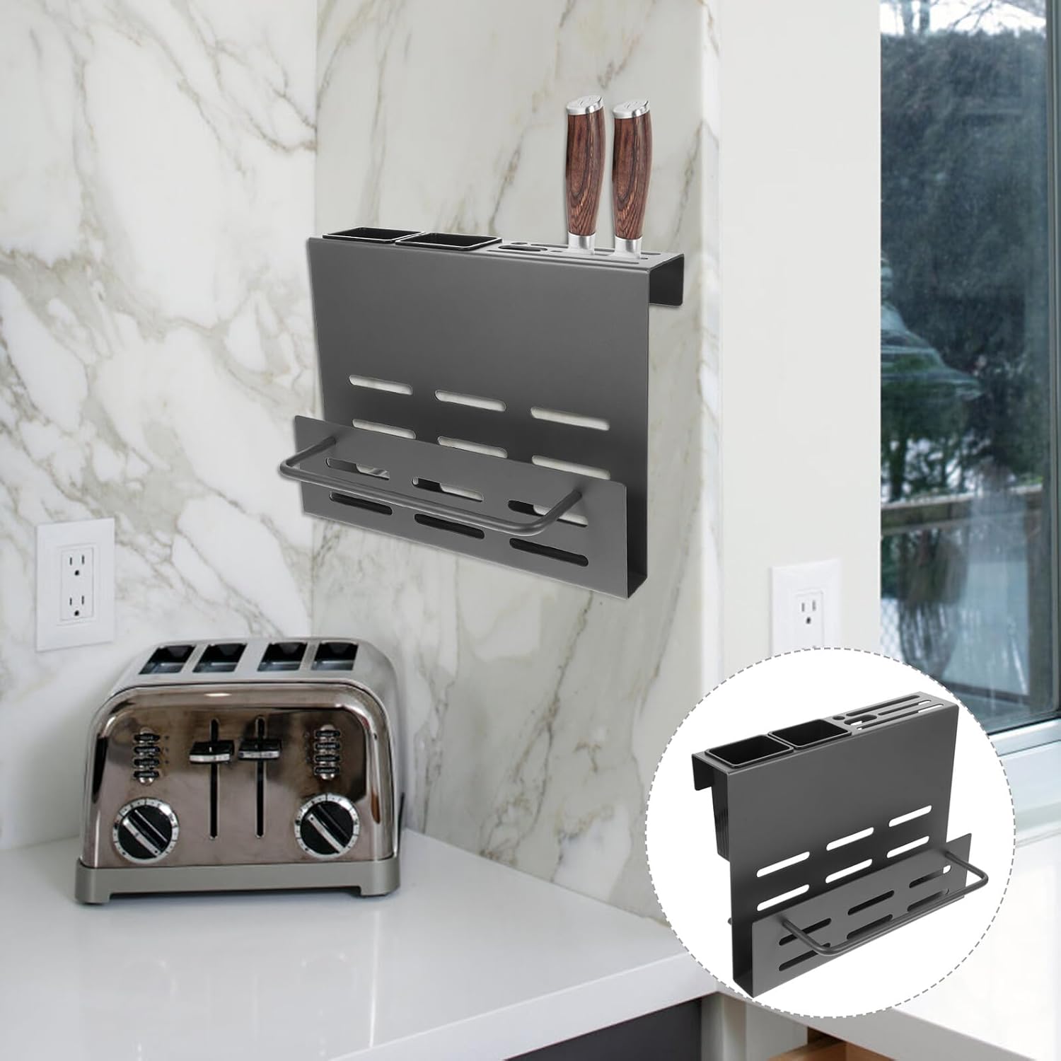 Package Include 1 x Wall Organizer Features -Size:27.50X20.50X14.50cm/10.81X8.06X5.70in (whole) -Color:Grey -Material:ABS, stainless steel -Product Info:Wall-mounted tool storage rack -Size:10.30X6.50X5.00cm/4.05X2.55X1.97in (removable tableware holder part) -Wall Chopstick Holder has simple and fashion design, elegant and beautiful, it will not take much room wall mounted cutlery holder. - You can also install this cutlery organizer on wall, which can help to save desktop space chopstick storage rack. - cutlery of different sizes, holding spoons, forks, chopsticks, and other small utensils, and store a cutting board. -Contemporary look blends well with most modern design style, which is decorative. Can be used as a practical housewarming to your friends, they will be very happy chopsticks holder. -There are drain holes below of the utensil holder for utensil to dry, and can draining water conveniently chopstick storage holder.Goods Informationchopstick storage rack Flat bottom, stable standing.kitchen tool holder It will make your kitchen in order.chopstick holders This item is a kitchen Chopstick Holder.chopstick storage It is made of ABS, stainless steel material, it can your kitchen flatware firmly, such as forks, spoons and so on