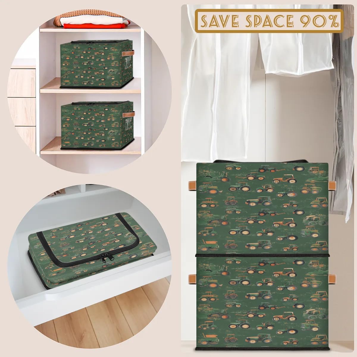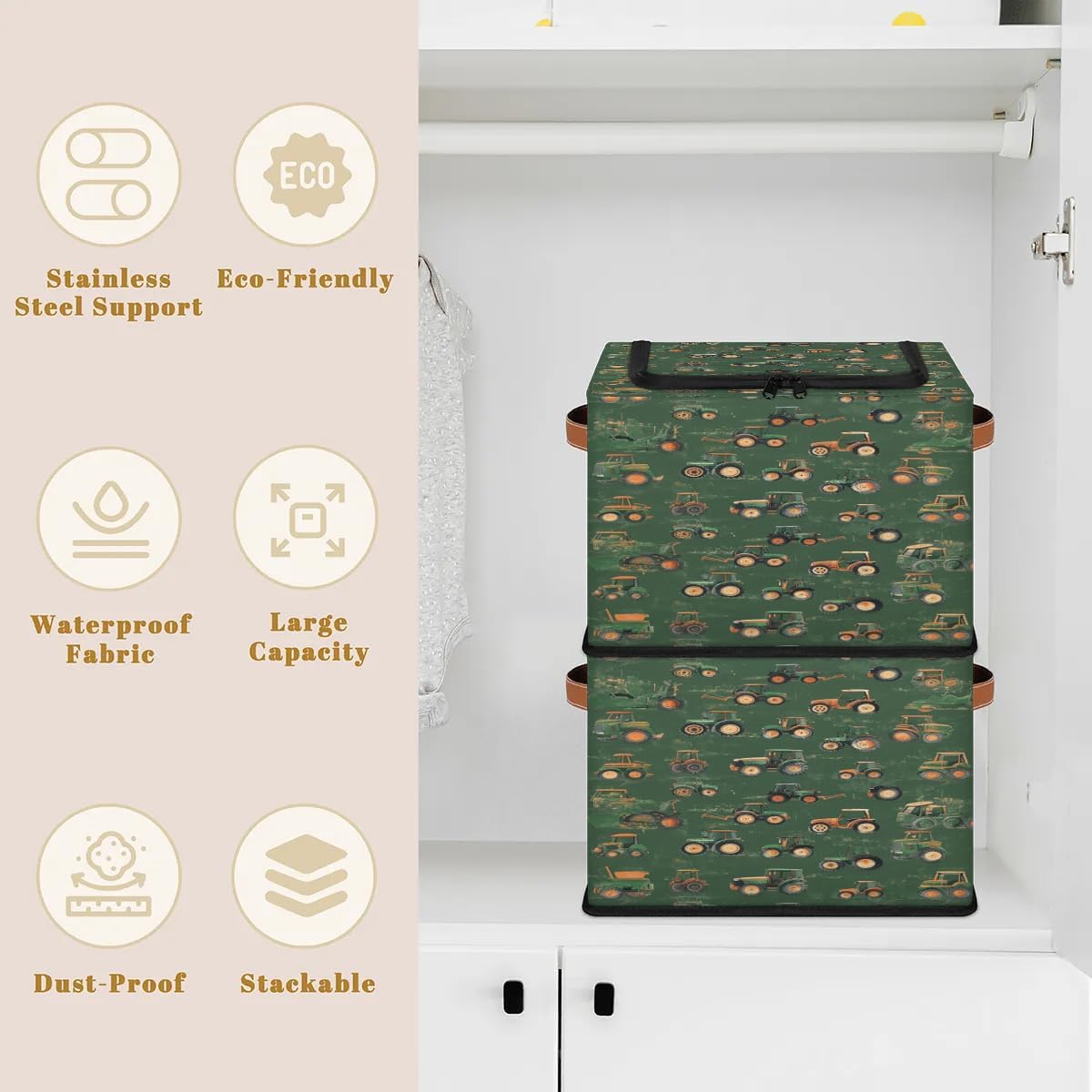 Large Capacity: storage bag size 14.2 x 10.2 x 10 in, Large capacity storage bins can store clothes, pillows, sheets, towels and other household items, Keep your belongings organized and easy to find!Material: Made of polyester with a leather handle, the storage box is waterproof, lightweight, colorfast, sturdy and easy to care for. 2 packStorage Bins with Zipper Lid: The storage box with zippered lid is designed to keep items from falling apart and keep your belongings protected from water and dust.Portable Collapsible: The organizer basket is surrounded by a fixable wire frame, movable frame, foldable design for easy storage, and the storage box can be easily folded to save space when not in use.Multi-purpose Storage Box: The storage bins are perfect for kitchens, living rooms, bathrooms, closets, game rooms and cars, college dorms, campers, apartments, hotels, baby nurseries and more.Care Approach: Hand wash only. Not machine washable. You can take a damp cloth or sponge to wipe the stained area. If there are more obvious stains, a little soap and water can be used to remove the stains, taking care to clean the soap. Air dry naturally after washing. Do not bleach. Do not scrub the basket vigorously with brushes or the like.
