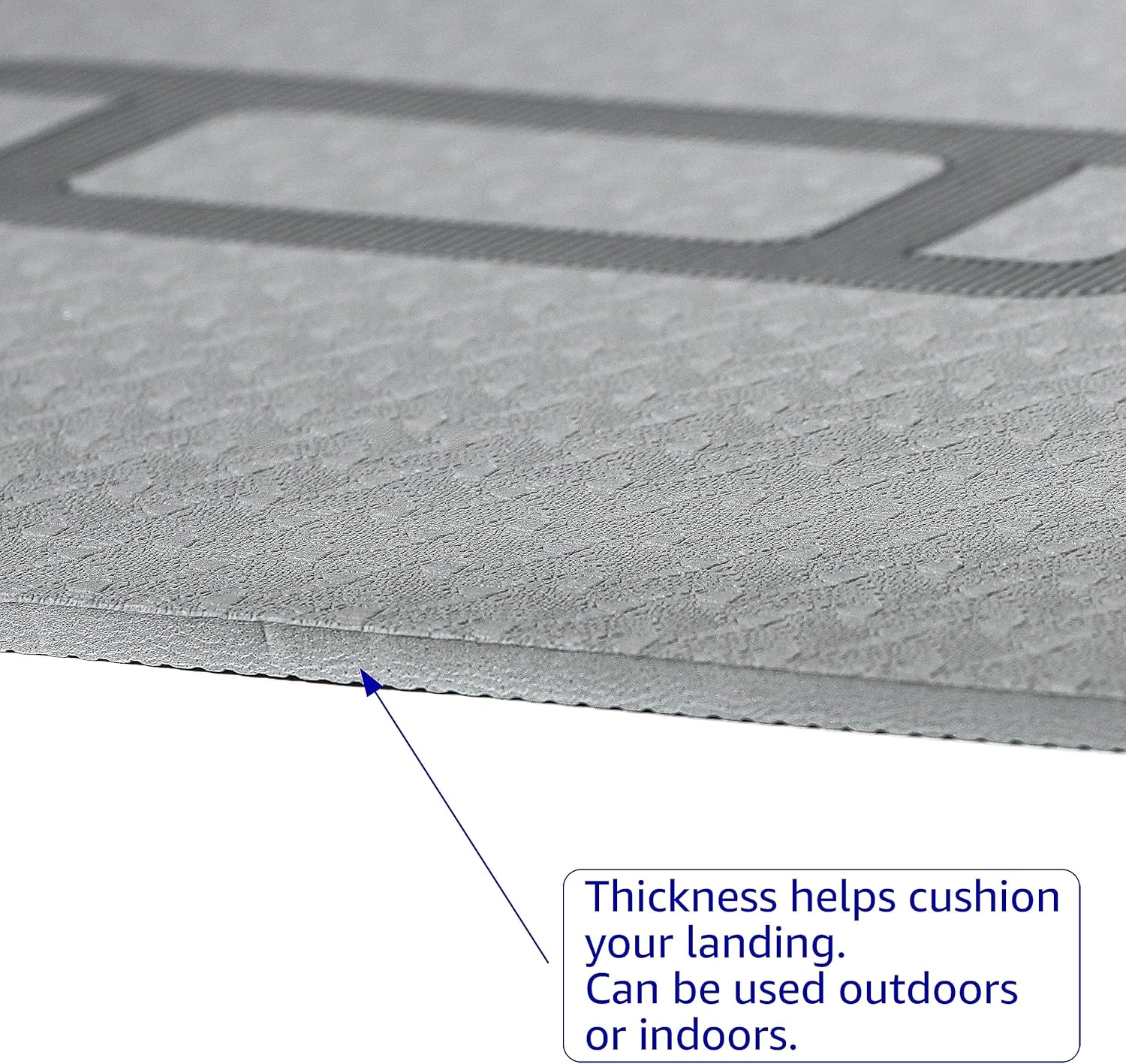 Enjoy your rope workout with this 6 foot long mat that is 26" wide and made of thick foam. The graphics include feet that are positioned to give reference to where to jump so as to stay centered on the mat. The thickness ensures protecting shins, quads and ankles from potential injury. Use the mat inside or outside. The textured surface means the mat will stay put for hours of jumping fun. To clean, wipe with a damp cloth and dry thoroughly. By Trademark Innovations.