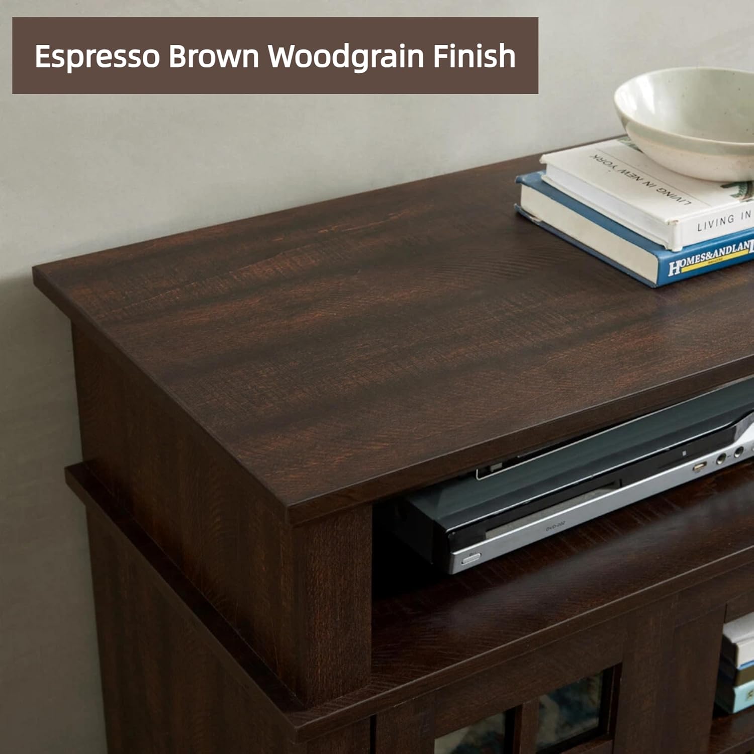 Trygoal Traditional 58" TV Stand, Rustic TV Cabinet with Open Shelves and Glass Door Storage Cabinet, Entertainment Console Table for TV Up to 65" for Living Room, Bedroom, Espresso
