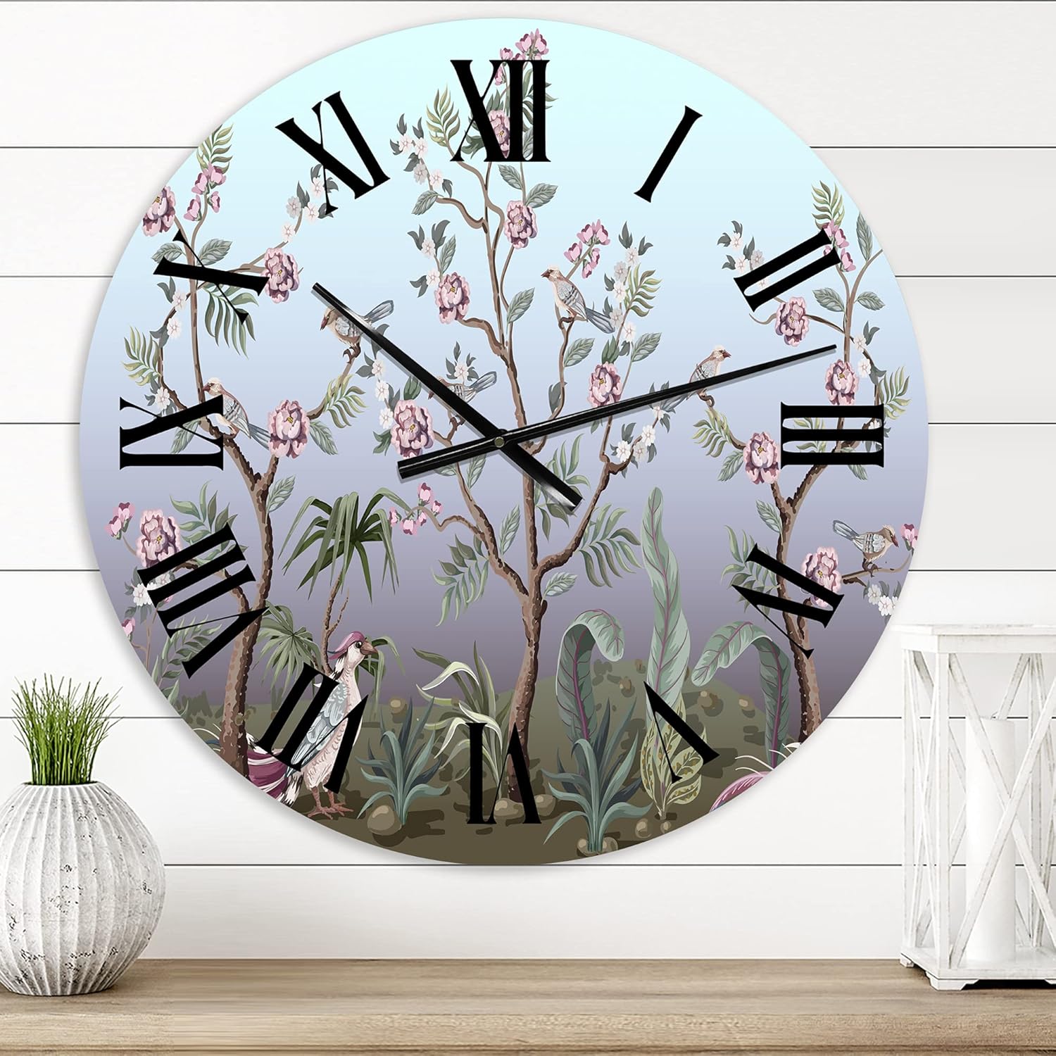 A beautiful addition to any home or office, this Traditional round wall clock is made on 100% solid aluminum. It has a highly reflective glossy finish creating a sleek modern look. This Chinoiserie With Birds and Peonies II wall clock arrives completely ready to hang on the wall. Simply insert the “AA” battery included with your order. Available in several size, this Modern Oversized Clock makes it the focal point of any room. Features - Ultra Gloss Coating ensures colors are extra vibrant with light reflection. - 1mm Aluminum grade sheet metal. - 1-inch mounting frame gives the illusion of artwork floating on the wall. - Mounting brackets and instructions are included. - High quality digital images are created directly into a glossy aluminum panel, producing a stunning and captivating print in the glossy finish of the metal. - Looks better than any photo paper and guaranteed to last at least 20 years. - Easy to clean with a microfiber cloth. - "AA" battery included with your order. - Easy to hang. See Options drop down for available sizes.