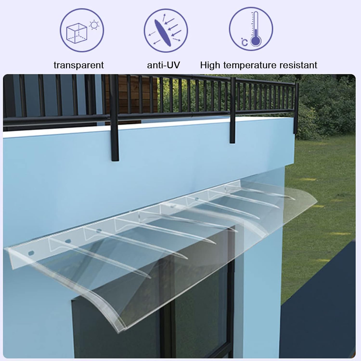 • *Transparent Balcony Door Canopy: Ultra-clear design, resists UV rays, creates soft light, reduces indoor temperature, perfect for reading and working on the balcony.