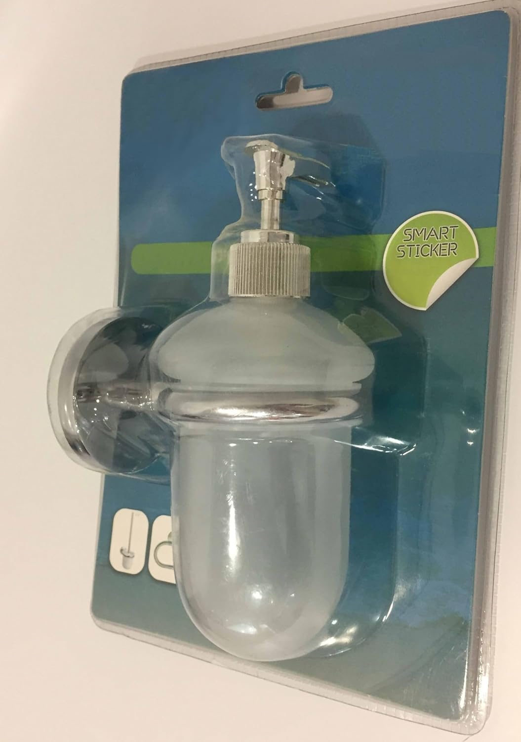 Pump Soap Dispenser Finest Quality - Dispenser Made from Glass, Holder Hanger Made from Chrome Wall Mounted by Drill (2 screws & wall plugs included) //or// by Two-sided 3M Sticker holds up to 8 kg. (included). * Elegant polished chrome design with a frosted glass cup. Easy, clean and simple installation Product is mounted on rear, unseen, mounting metal plate. -> Easy Clean use. -> Storing just about any liquid - Soap, Shampoo, Conditioner, Lotion, Creme, etc. -> Excellent pump suction strength. -> Very Comfortable!! -> Rustproof & Easily cleaned. -> Durable for years. Volume: 300 ml Diameter x Height: 7 x 17 cm / 2.75 x 6.69 inch Wall Plate -- Diameter: 6 cm / 2.36 inch